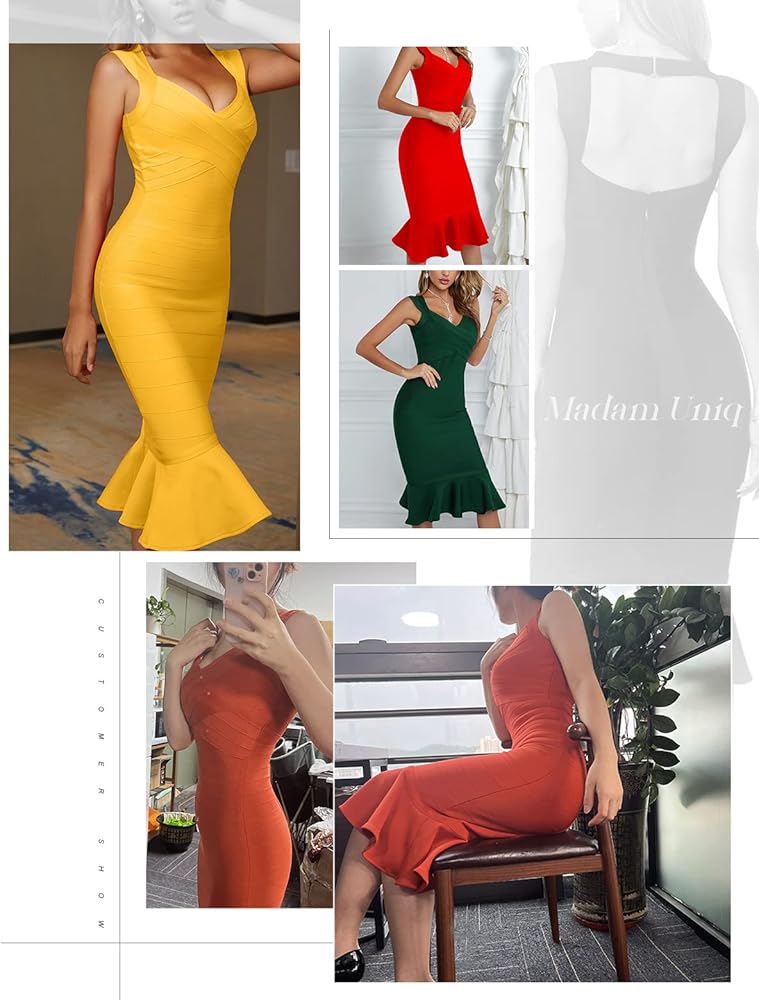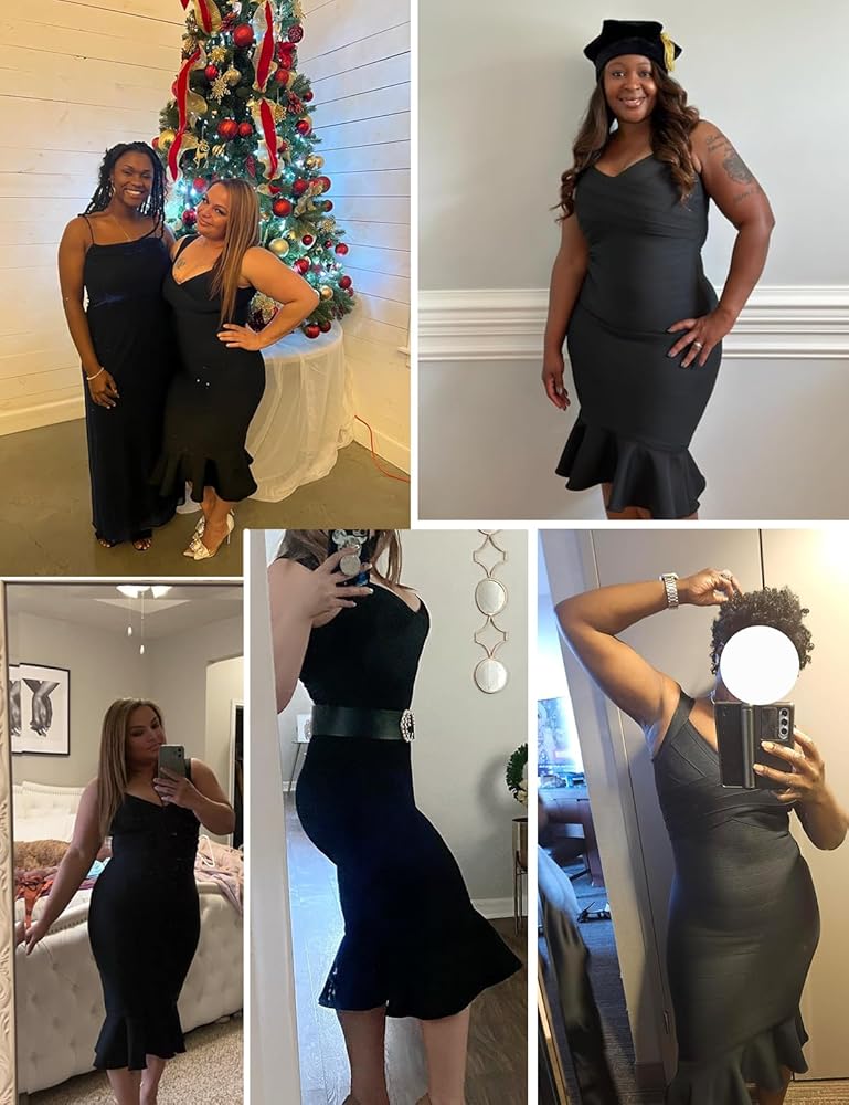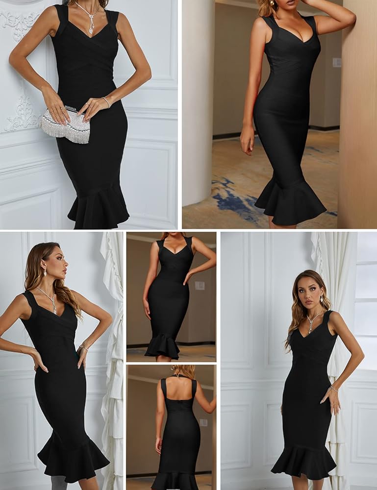 النمط: مع تصميم صدري مثير وحزام كتف، فإن قصات حاشية حورية البحر متوسطة الطول تخلق منحنيات رائعة. تألقي بأناقة مع فستان النادي الأسود هذا، ارتديه مع حذاء بكعب عالٍ، أو حافظي على مظهر كاجوال مع زوج من الأحذية البيضاء.