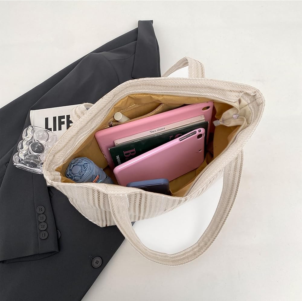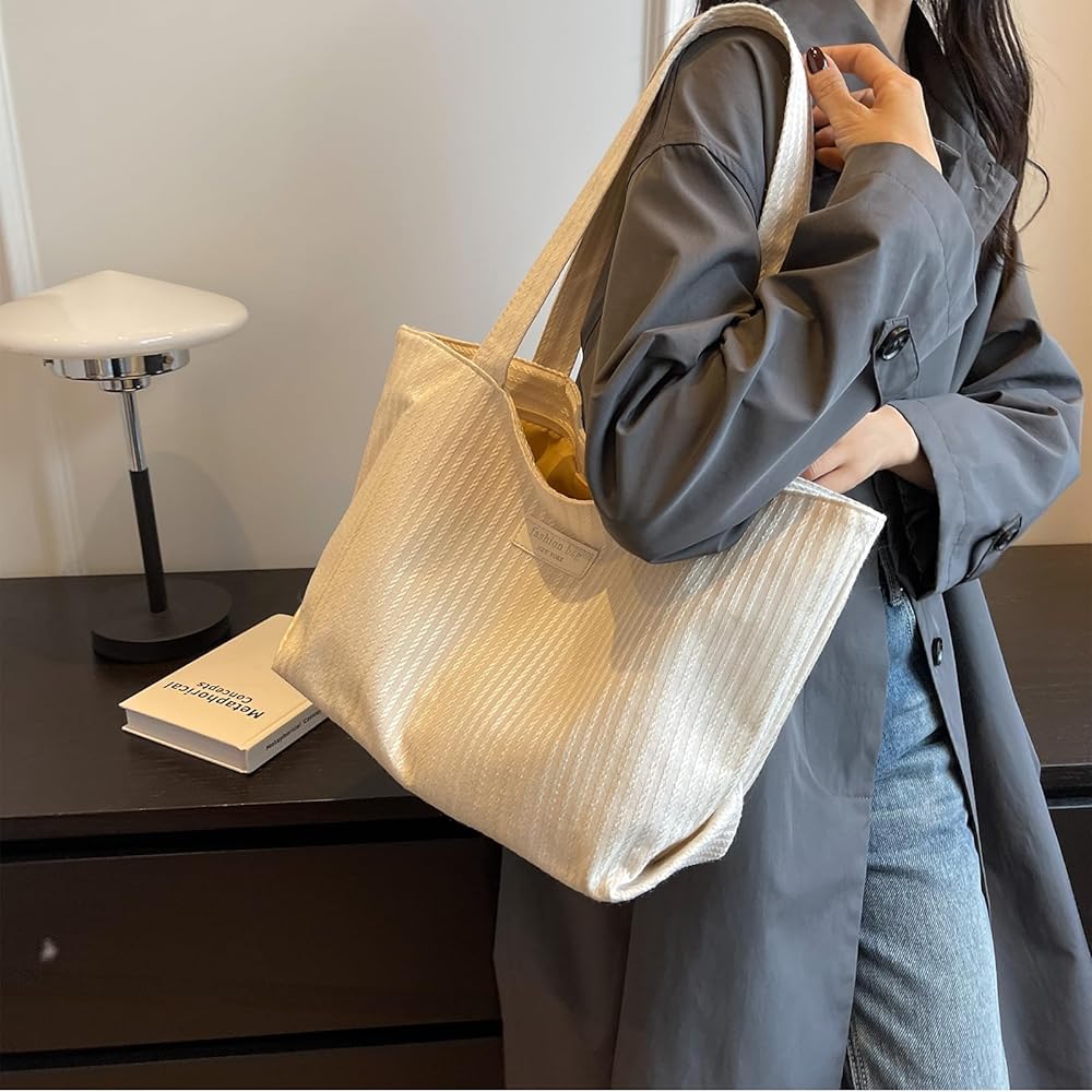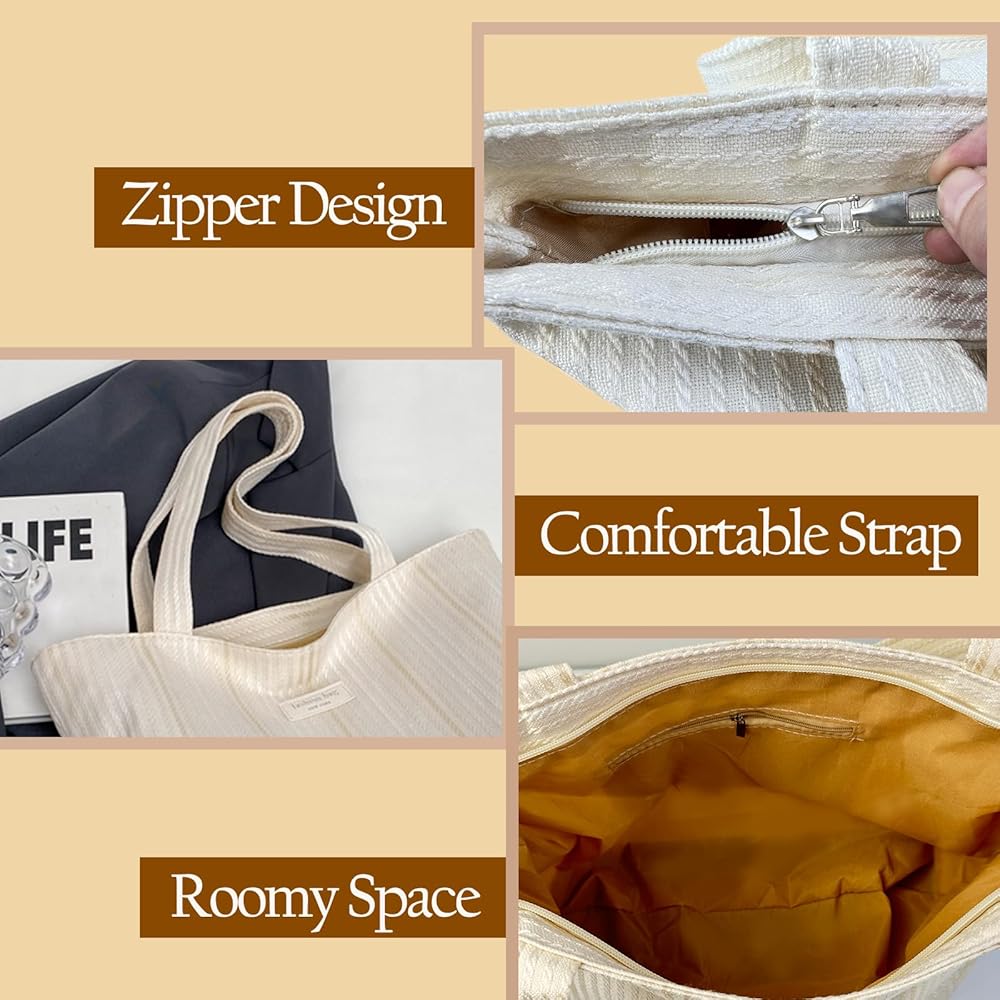 تم تصميم حقيبة اليد القماشية البيضاء هذه بسحاب وجيب داخلي صغير. مريحة ومفيدة لحقيبتك اليومية. لون أنيق يجعلها هدية عيد ميلاد للنساء. هذه الحقيبة الكبيرة توت هي حقائب عصرية للنساء.
