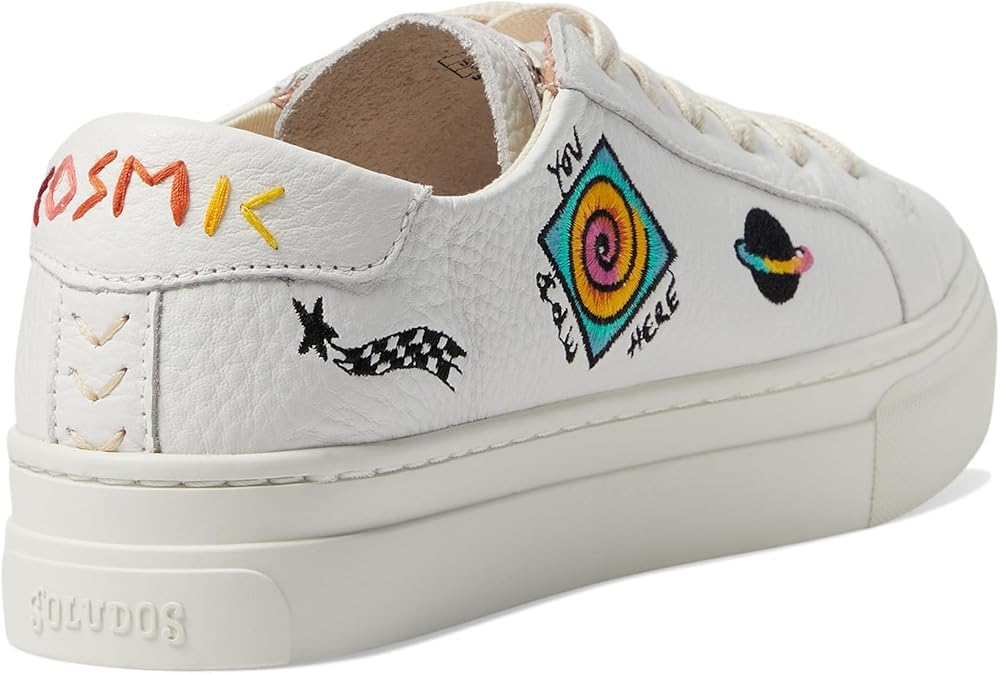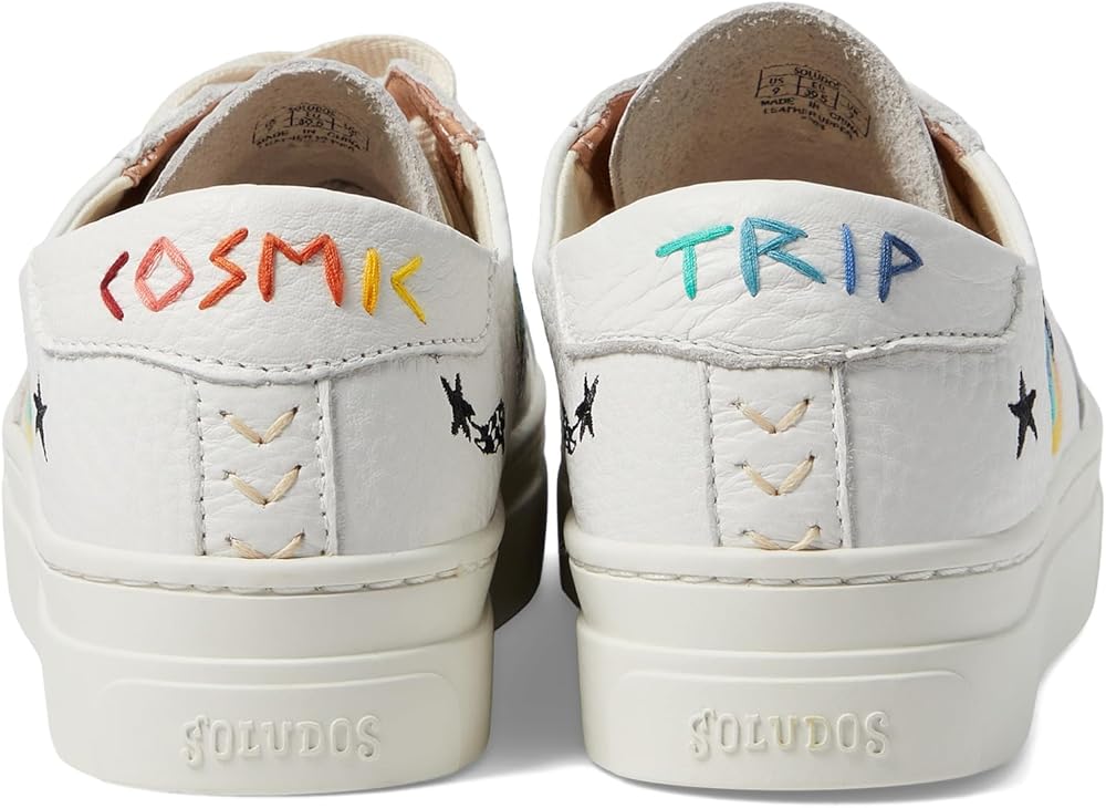 • CELESTIAL COMFORT: Elevate your casual day outs with Soludos Cosmic Trip Ibiza Platform Sneakers and experience enhanced comfort like never before. These fashion sneakers for women are designed to pamper your feet. They feature a premium leather upper, renowned for its soft, luxurious feel, ensuring your feet stay comfortable throughout the day. The removable leather and textile insole provides extra cushioning, making every step a delightful experience.