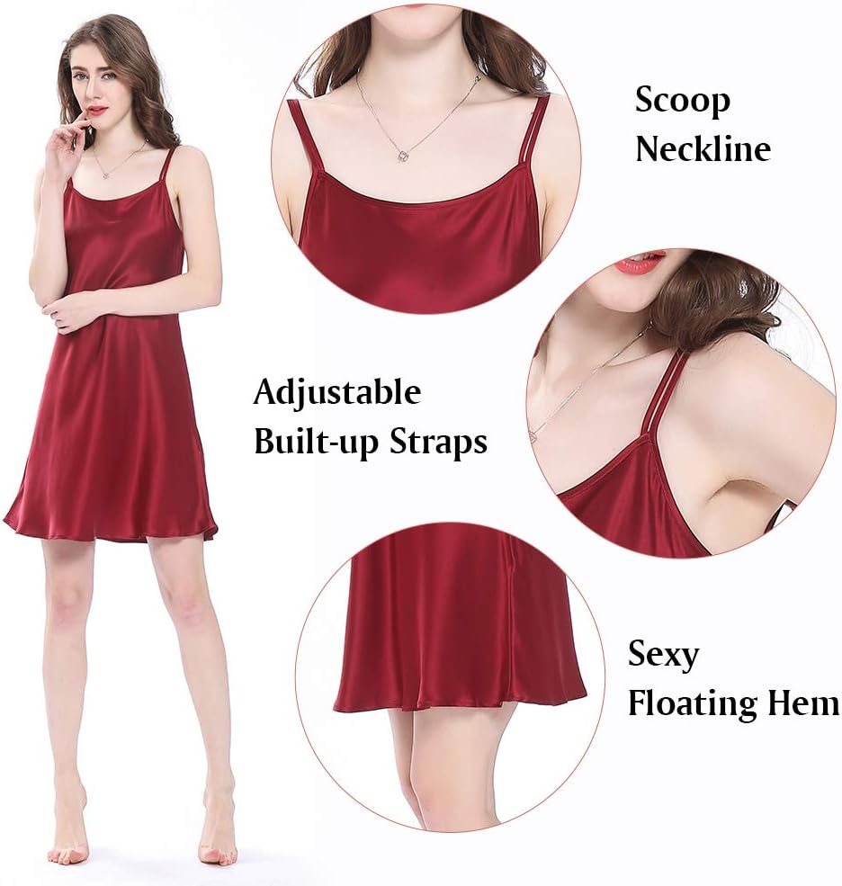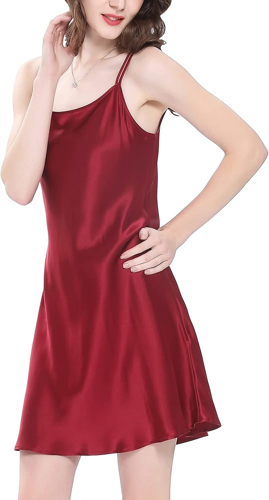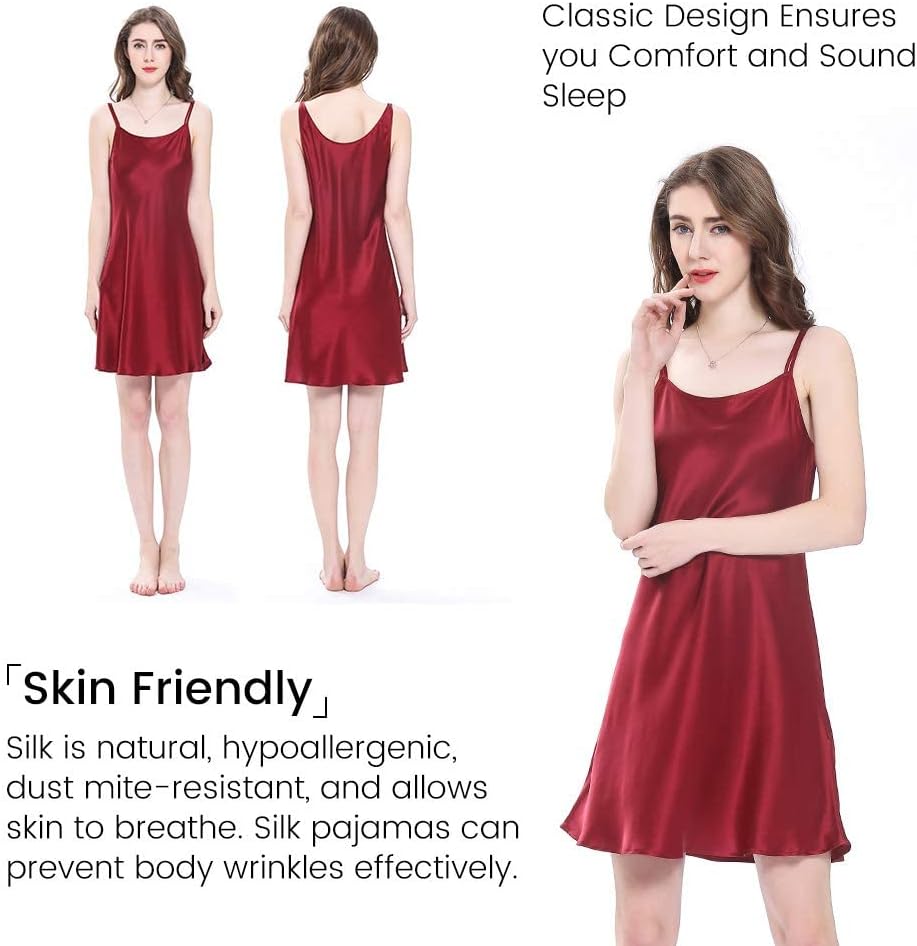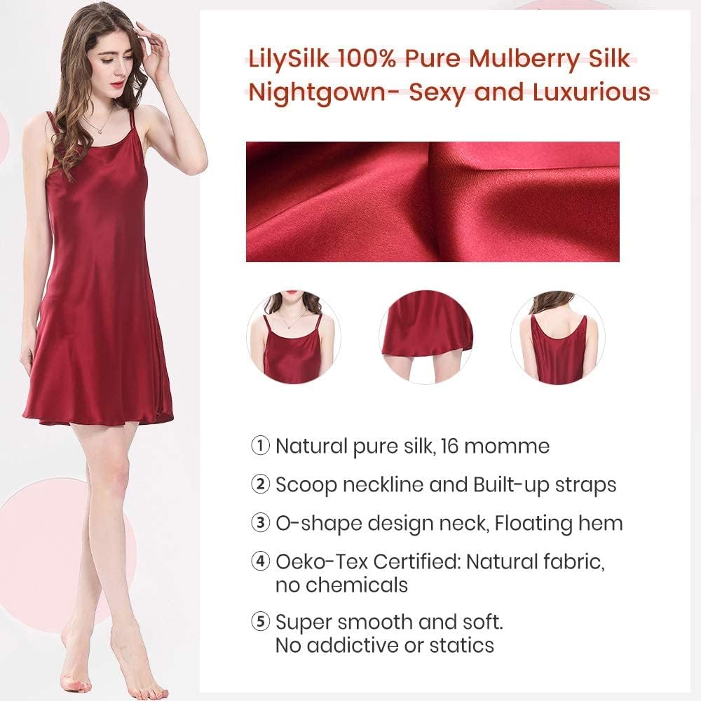 ثوب نوم حريري 100% من LILYSILK للنساء 19 مم حرير التوت قصير قميص نوم مثير للسيدات، أحمر M
