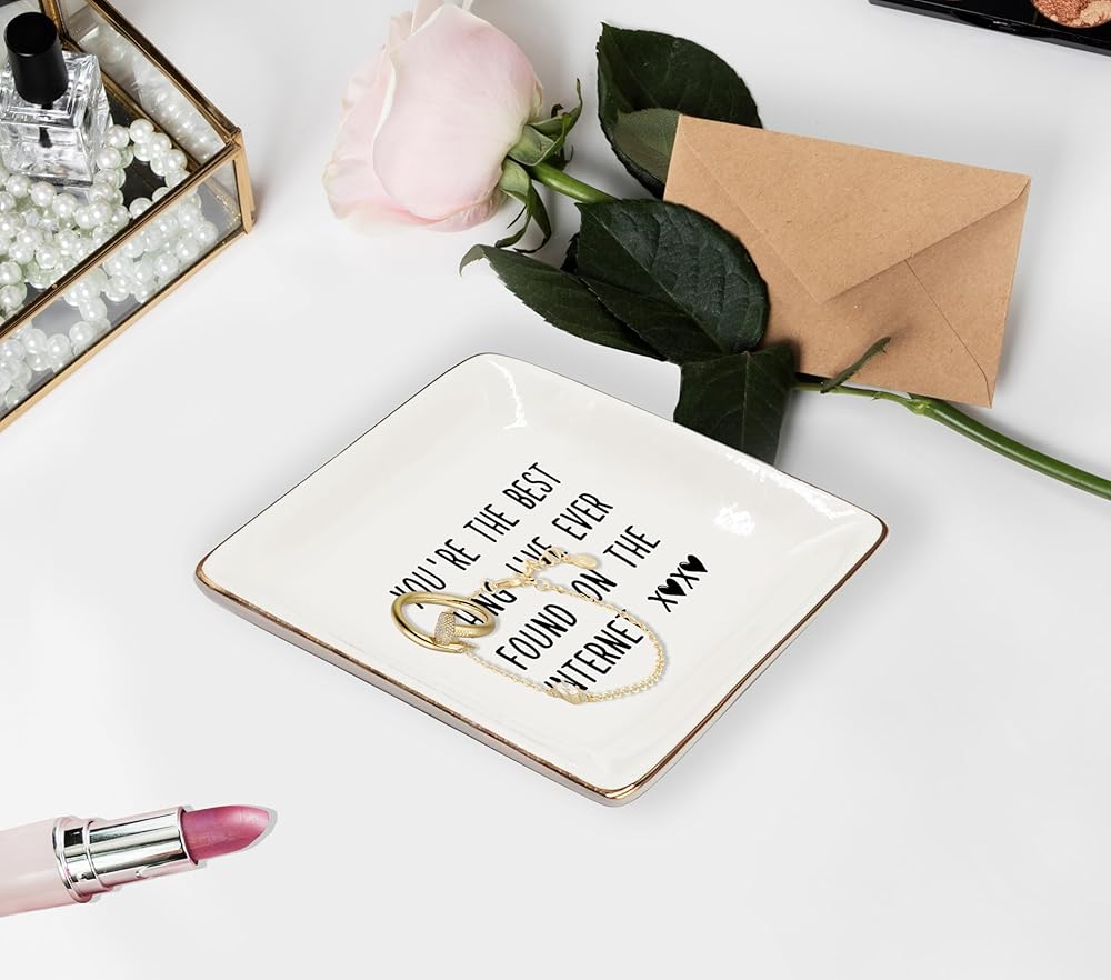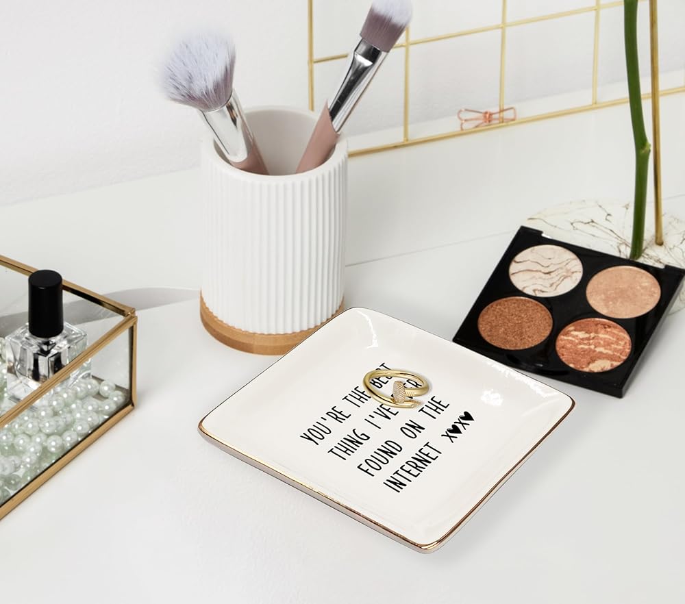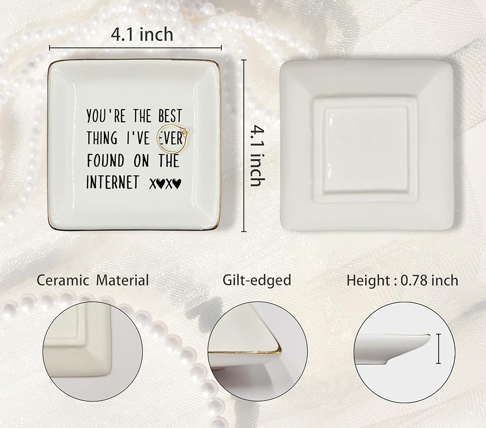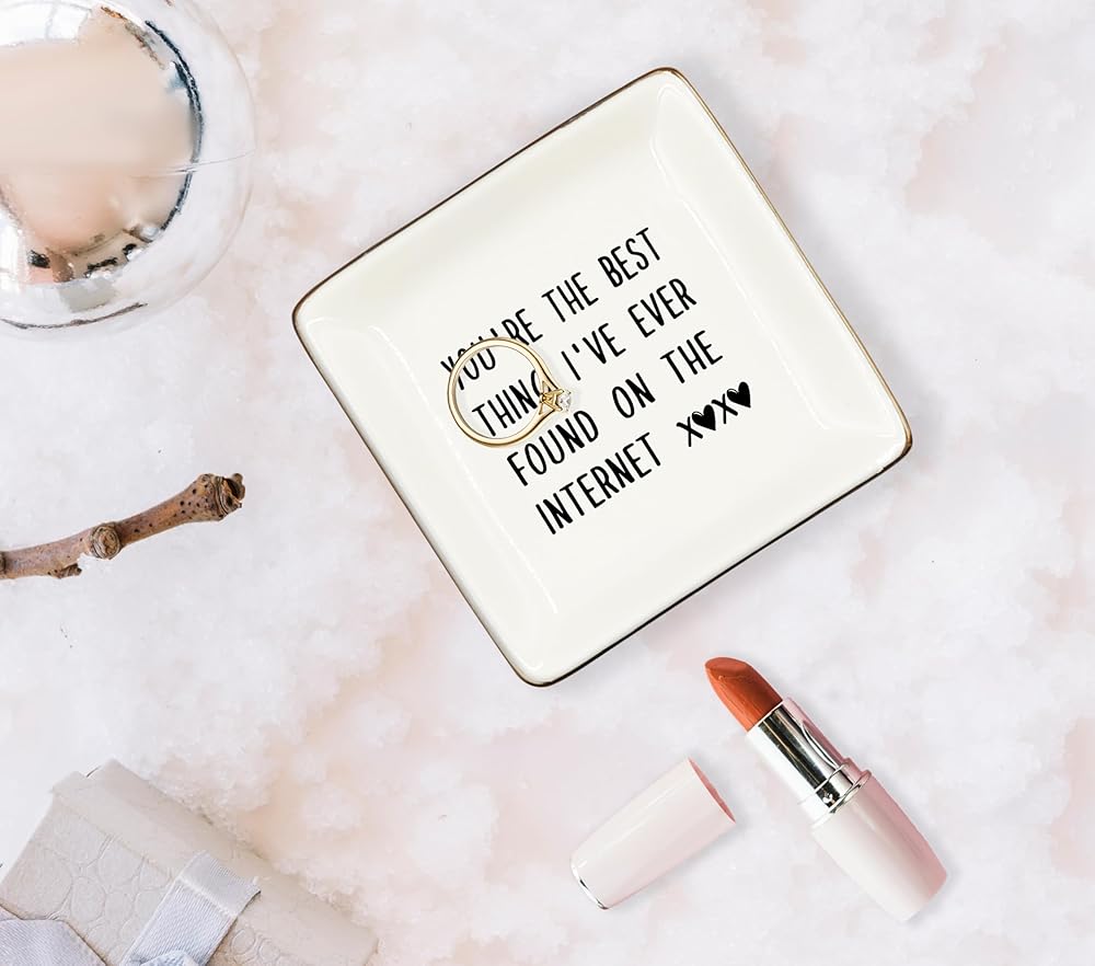WODMIS 230-Hh-Ssp You Are The Best Thing i’Ve Ever Found On The Internet Ceramic Jewelry Tray Dish, Couples Couple Ring Trinket Jewelry Plate Dish, Christmas Valentine Gifts For Couple Her Girlfriend