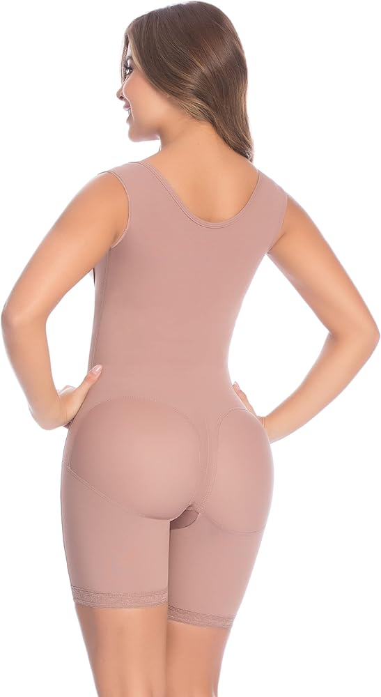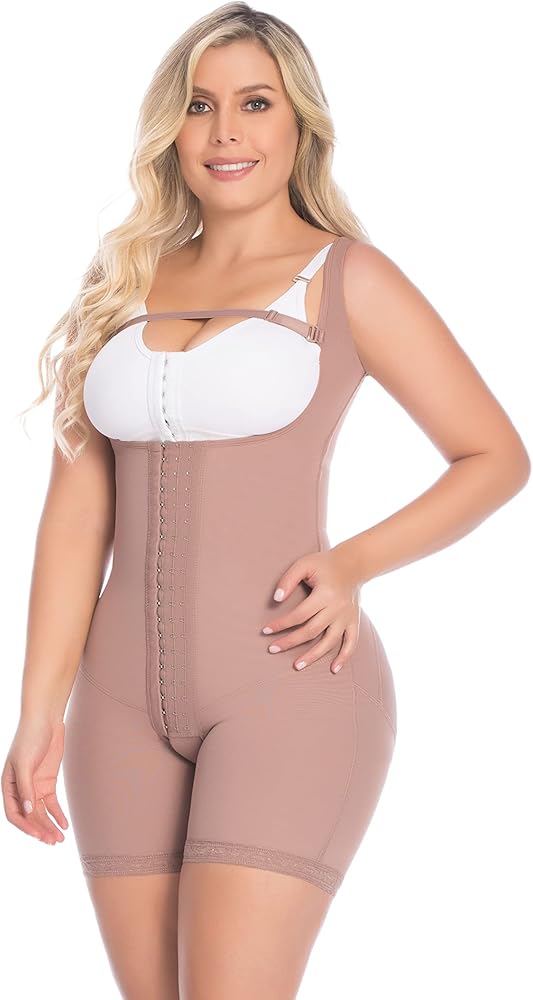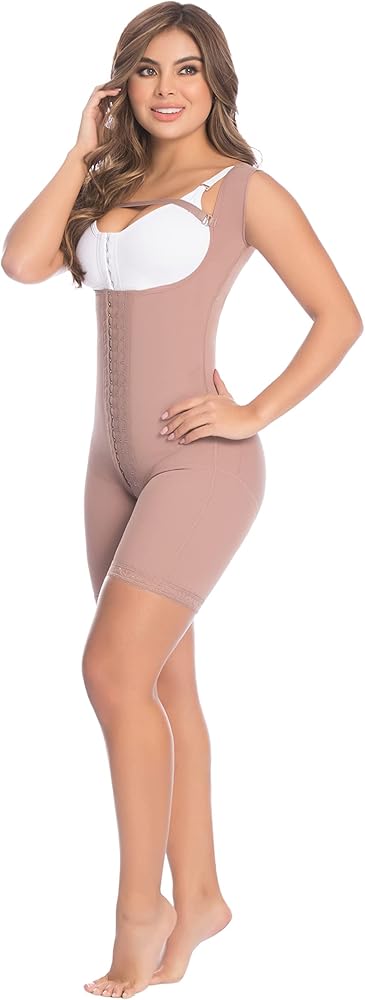 • 3-Level closure to adjust while going down in sizes, High back covering, Middle leg girdle. Full Body Shapewear Bra-less with Leg and Thigh Compression and Abdominal reinforcement to provide greater compression and adjustment