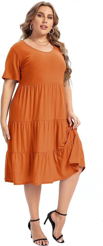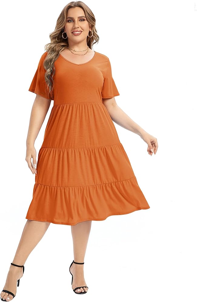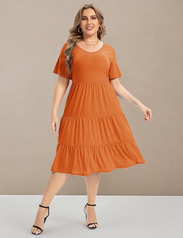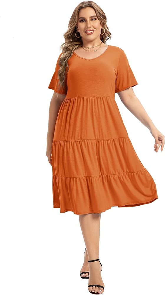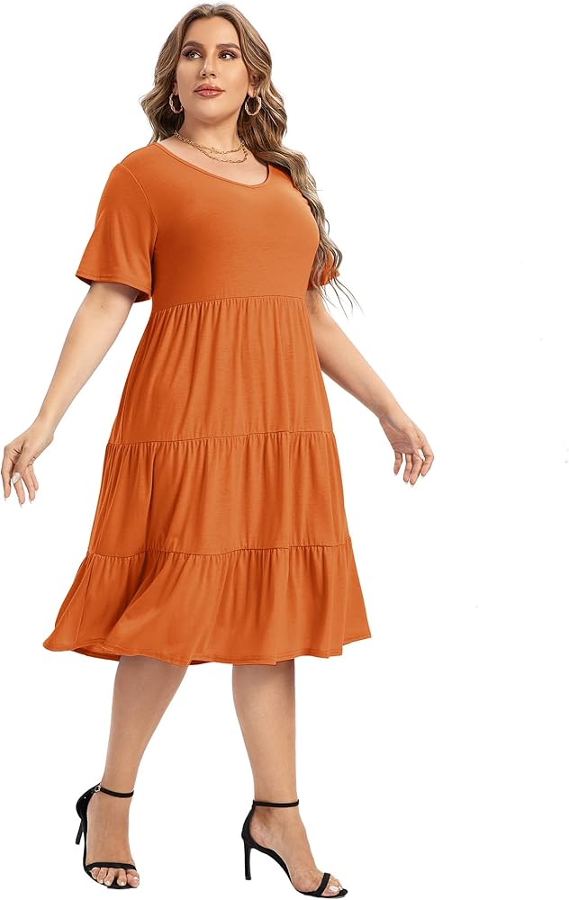 • السمات: فستان كاجوال، كم طويل وأكمام قصيرة، تصميم مثير على شكل حرف V، حاشية مكشكشة، مقاس فضفاض، فستان طويل بطول الركبة، فستان متأرجح.