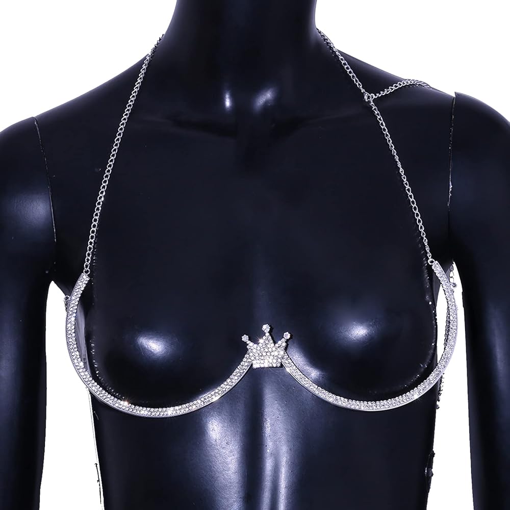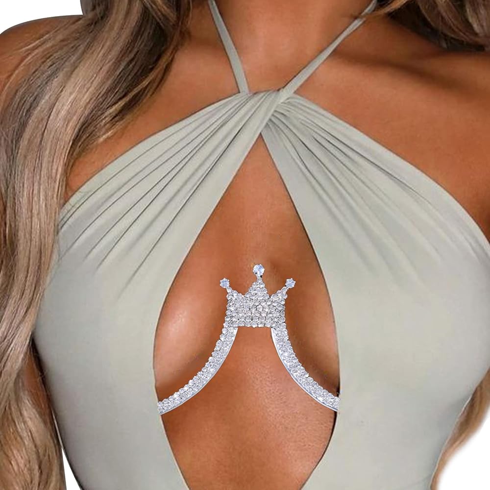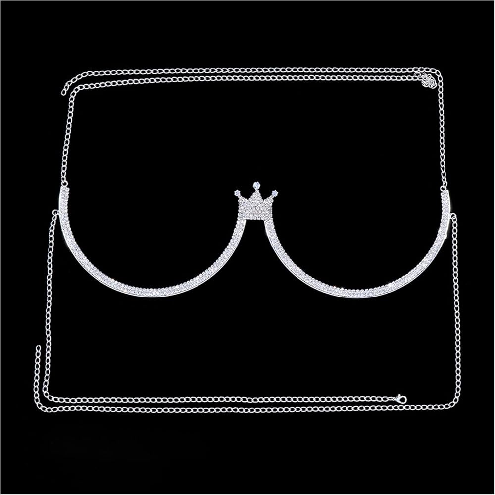 حجر الراين تاج قلادة الصدرية الجسم سلسلة مجوهرات الصيف كريستال الصدر قوس سلسلة حجر الراين Bralette الجسم سلسلة للنساء الطرف (الجسم كاين الفضة)