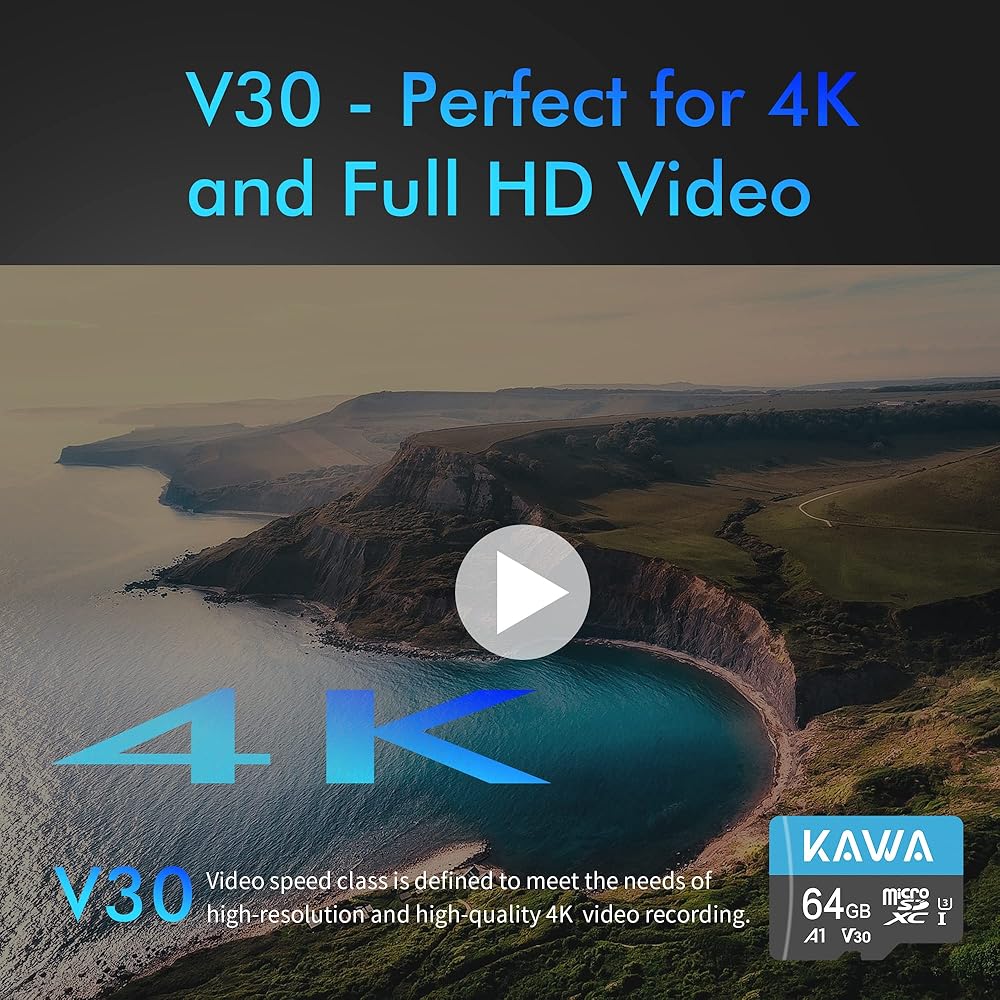 • بطاقة مايكرو اس دي 64 جيجابايت: بطاقة كاوا micro SD مع سرعة قراءة / كتابة قصوى لجميع احتياجات بطاقة الذاكرة الخاصة بك حتى 64 جيجابايت.