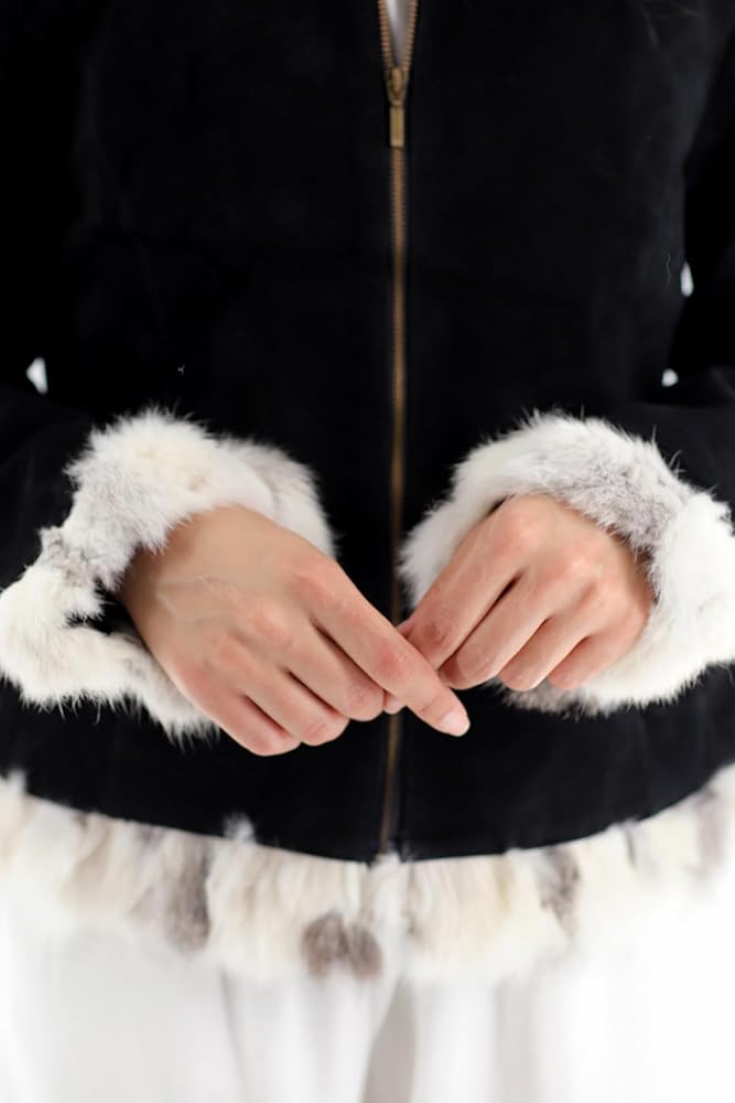 • This meticulously crafted jacket seamlessly merges the softness of suede leather with the opulence of rabbit fur, resulting in a unique and eye-catching piece that is both versatile and timeless.