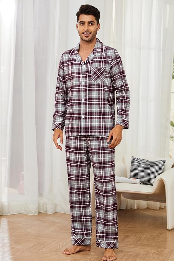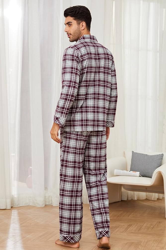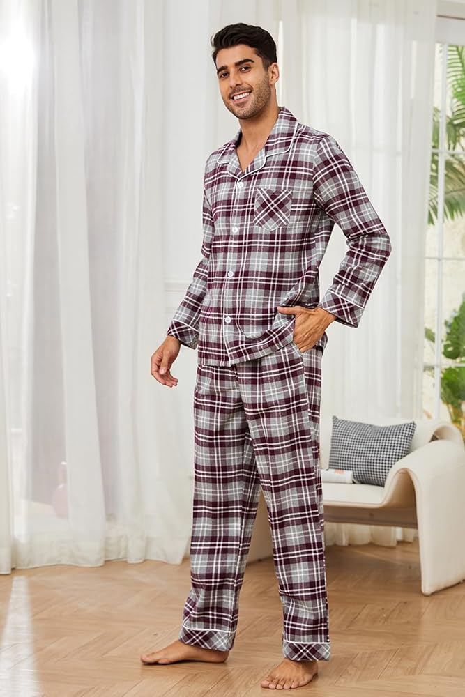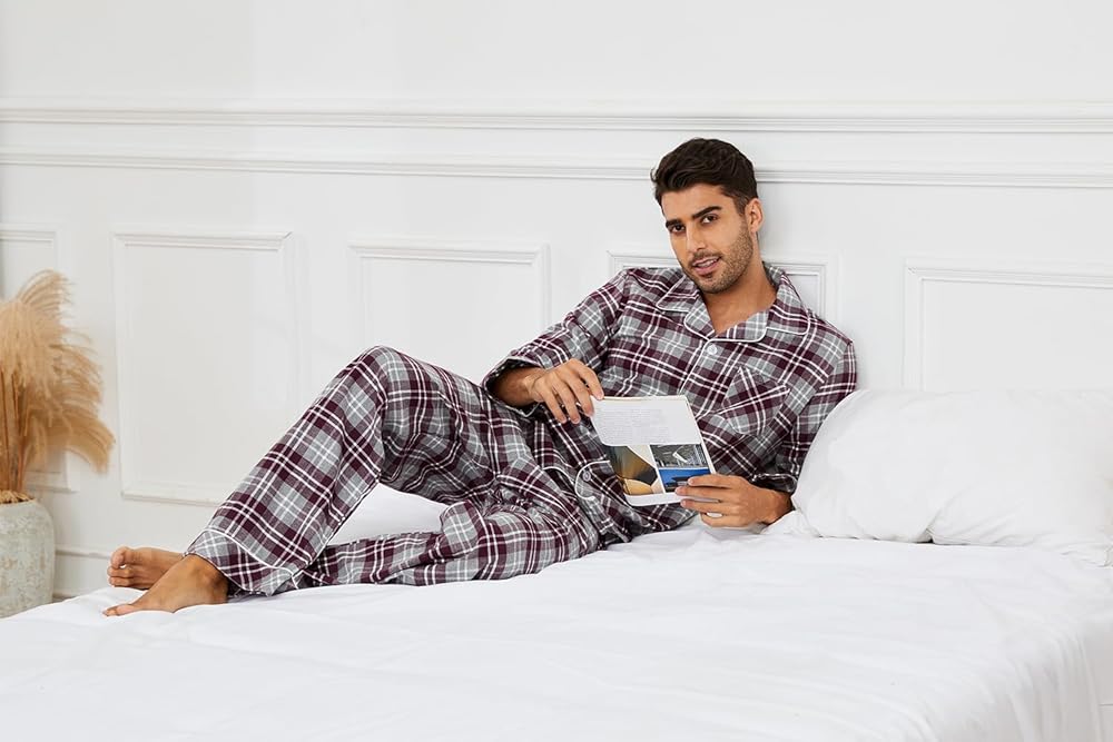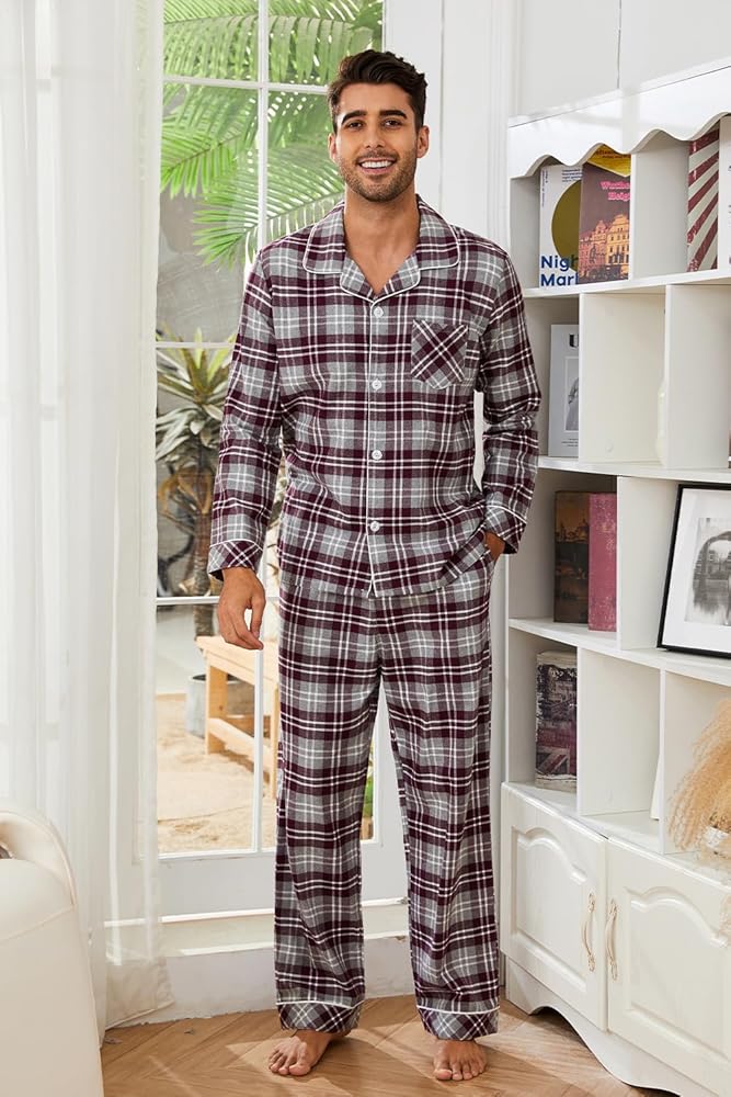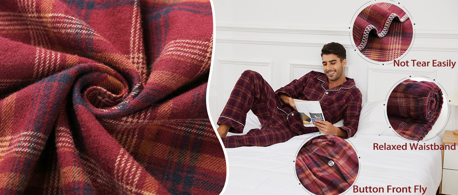 【مادة فائقة النعومة】: تتكون من صوف منسوج بالكامل من القطن بنسبة 100% مع نسيج ناعم. تتميز هذه البيجامة الرجالية بقدرتها على امتصاص العرق وقابلية الغسيل القوية وستبقيك دافئًا حتى في الأشهر الباردة.