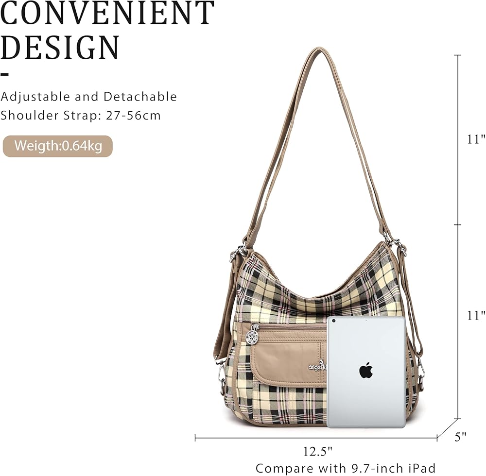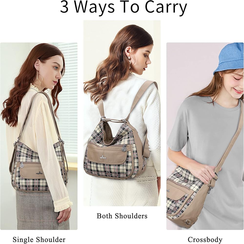 🤍【تنظيم جيد】تحتوي حقائب اليد النسائية هذه على مقصورتين أماميتين بسحاب، وجيب مسطح وجيب خلفي بسحاب. 5 جيوب داخلية: 1 جيب جانبي بسحاب، 2 جيب رئيسي بسحاب، 2 جيب جانبي مفتوح. وتأتي مع حزام كتف طويل قابل للتعديل، مما يسمح باستخدامها كحقيبة ظهر وحقيبة كتف وحقيبة يد في آن واحد. رائعة للاستخدام في السفر والعمل والتسوق وما إلى ذلك.