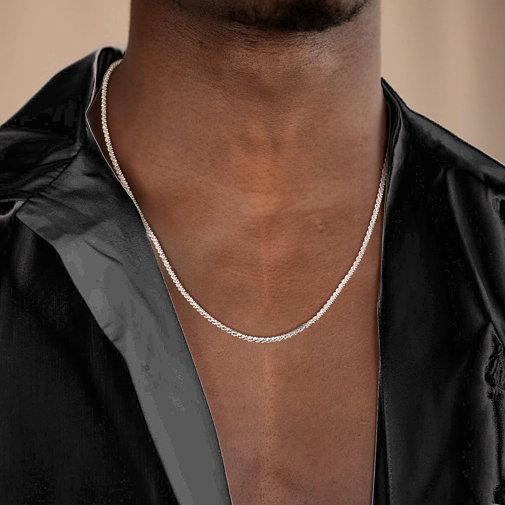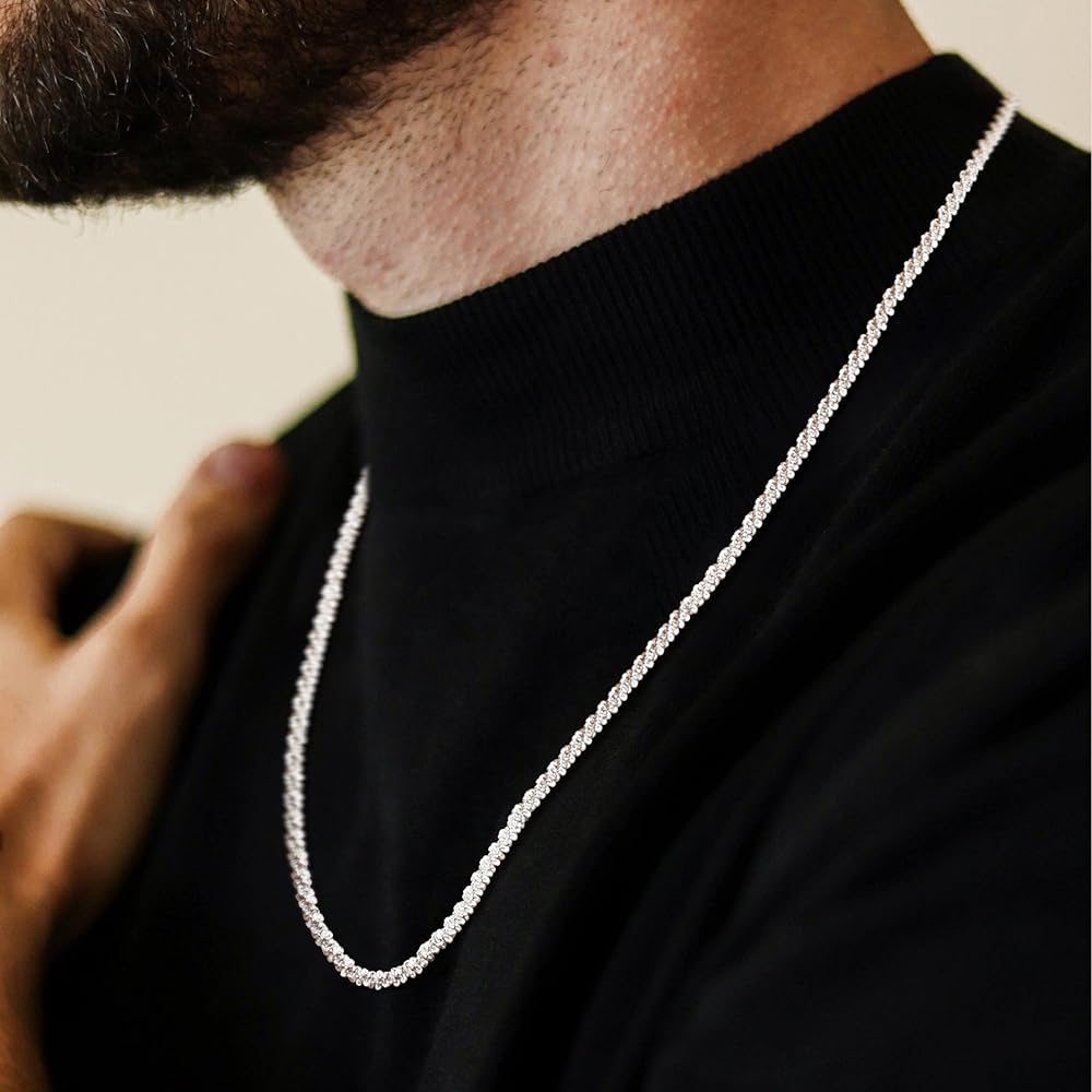 【المقاس】تتضمن هذه المجموعة قلادتين من الحبال الملتوية اللامعة، واحدة مقاس 18 بوصة والأخرى مقاس 20 بوصة، بعرض 3 ملم