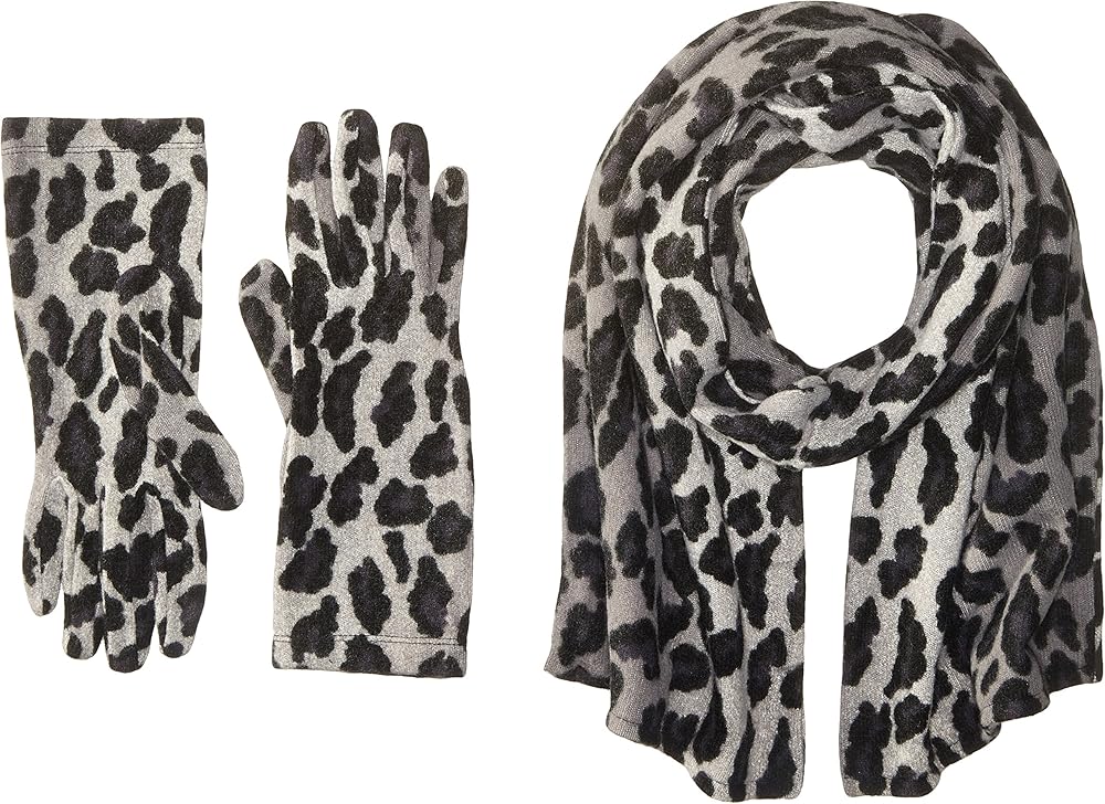 طقم وشاح وقفازات بطبعة جلد الفهد للسيدات من La Fiorentina مكون من قطعتين