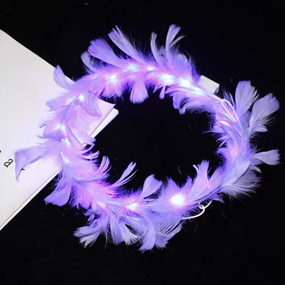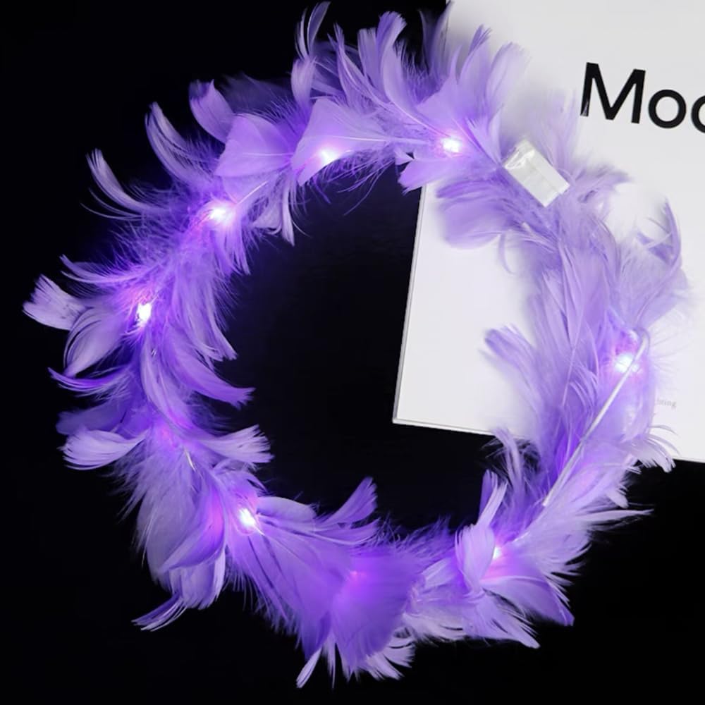The hair band is made of high quality artificial goose feather material, which is reliable, elegant and not easy to fade; Equipped with 10 colorful LED lights, it is safe and comfortable to wear, leaving a good party impression for you and your friends.