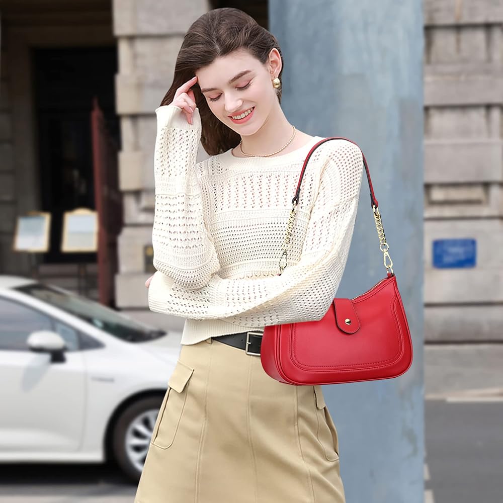 【 تصميم عصري 】: حقيبة هوبو جلدية صغيرة للنساء مع مشبك مغناطيسي قوي مع تصميم قلاب، بحيث يكون مظهر حقيبة الكتف النسائية عصريًا وآمنًا. التصميم الخارجي الأنيق مقترن بأشرطة سلسلة ذهبية، مما يسمح لك بمطابقة أنواع مختلفة من الملابس. .