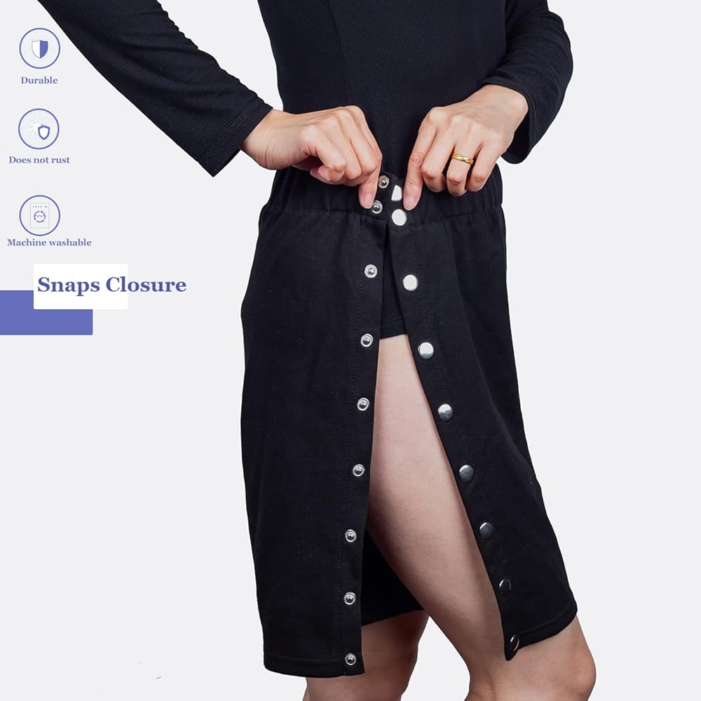 أزرار كبس مزدوجة على الجانب لمنع التمزق العرضي. تتميز الأزرار بأنها متينة وتعتبر هدية رائعة لإعادة التأهيل بعد العمليات الجراحية. لا يوجد شريط فيلكرو يسبب الخدش، أو أزرار يصعب إغلاقها، أو سحابات غير مريحة.