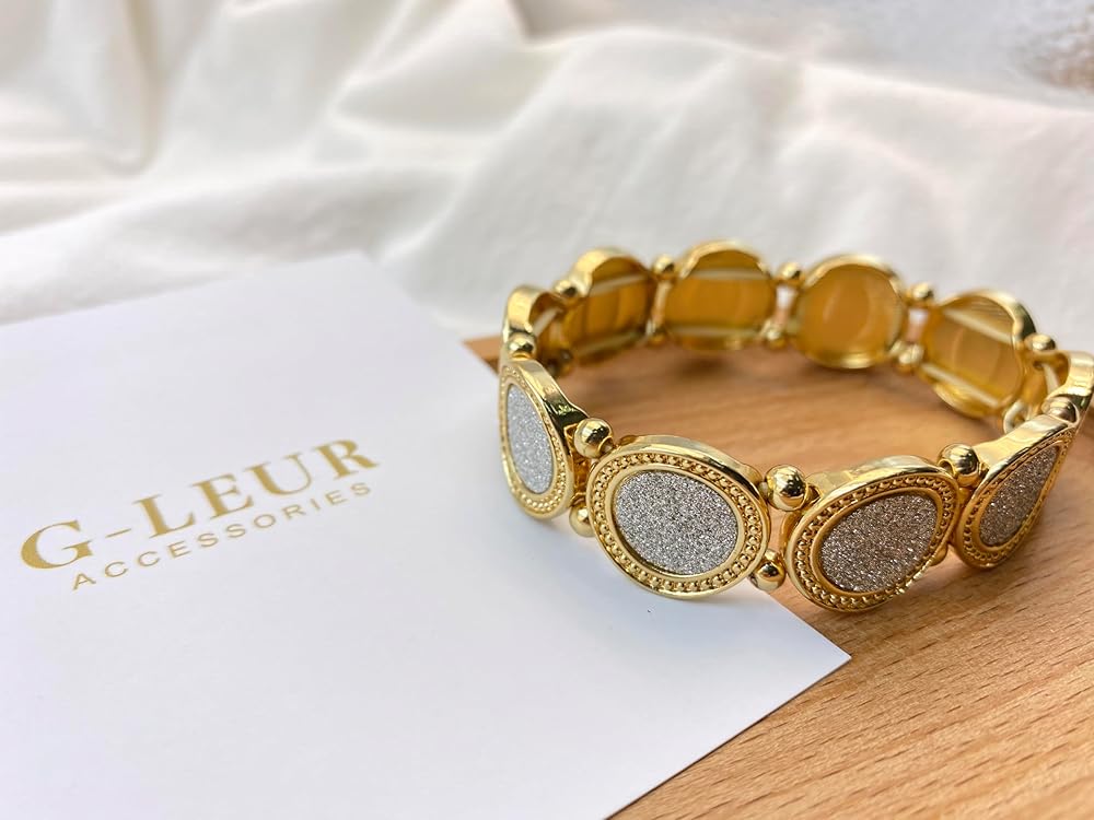 سوار مطاطي ذهبي اللون مقاس 7.9 بوصة مطلي بالذهب قابل للتعديل للنساء