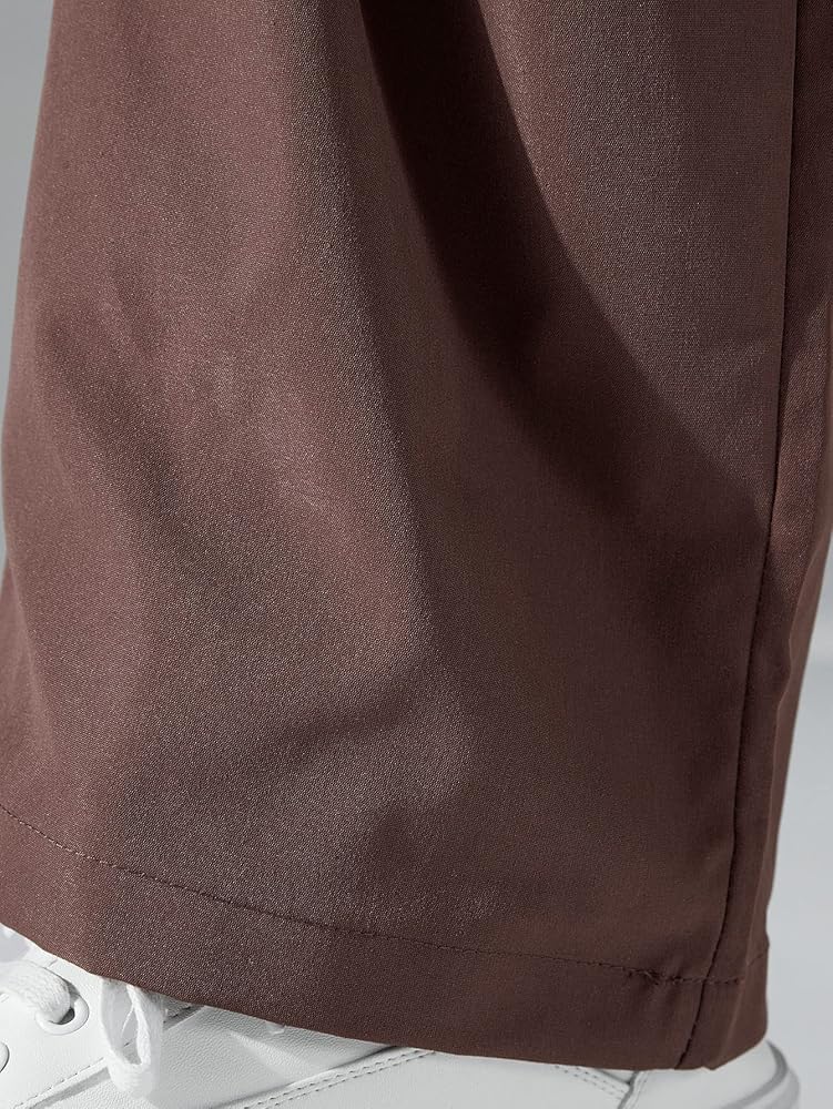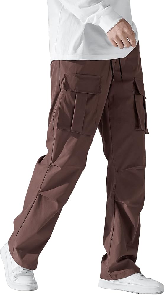 GORGLITTER بنطال كارغو بجيب برباط للرجال بنطال رياضي بأرجل مستقيمة بلون الشوكولاتة بني X-Large