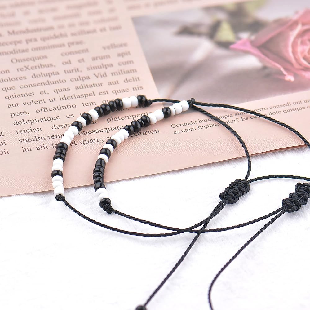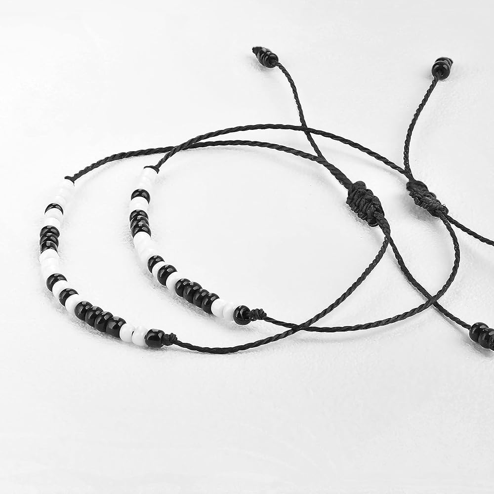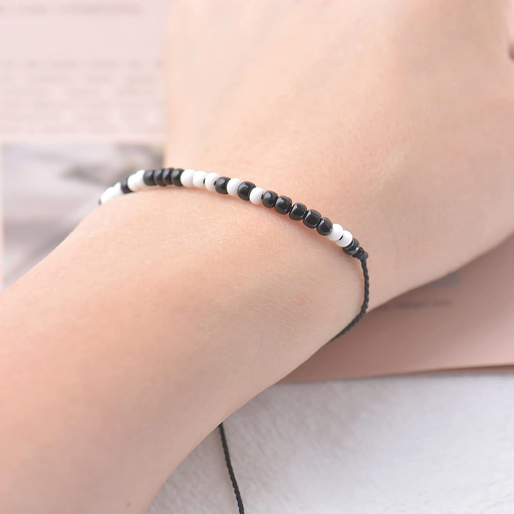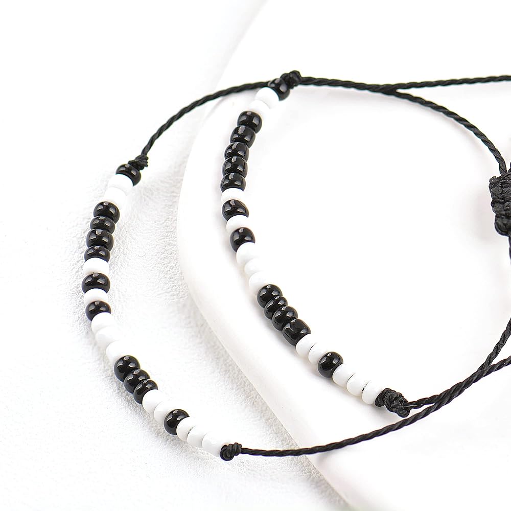 طول قابل للتعديل حوالي 6 بوصة إلى 11 بوصة، قد يناسب معظم الأشخاص، الأساور المطابقة مضفرة يدويًا بخرز بذور زجاجية وحبل شمع.