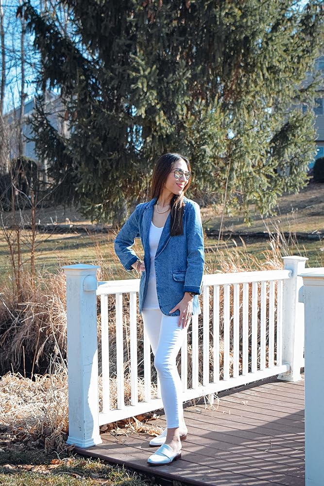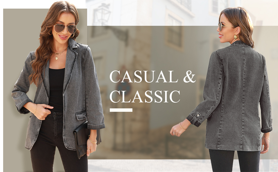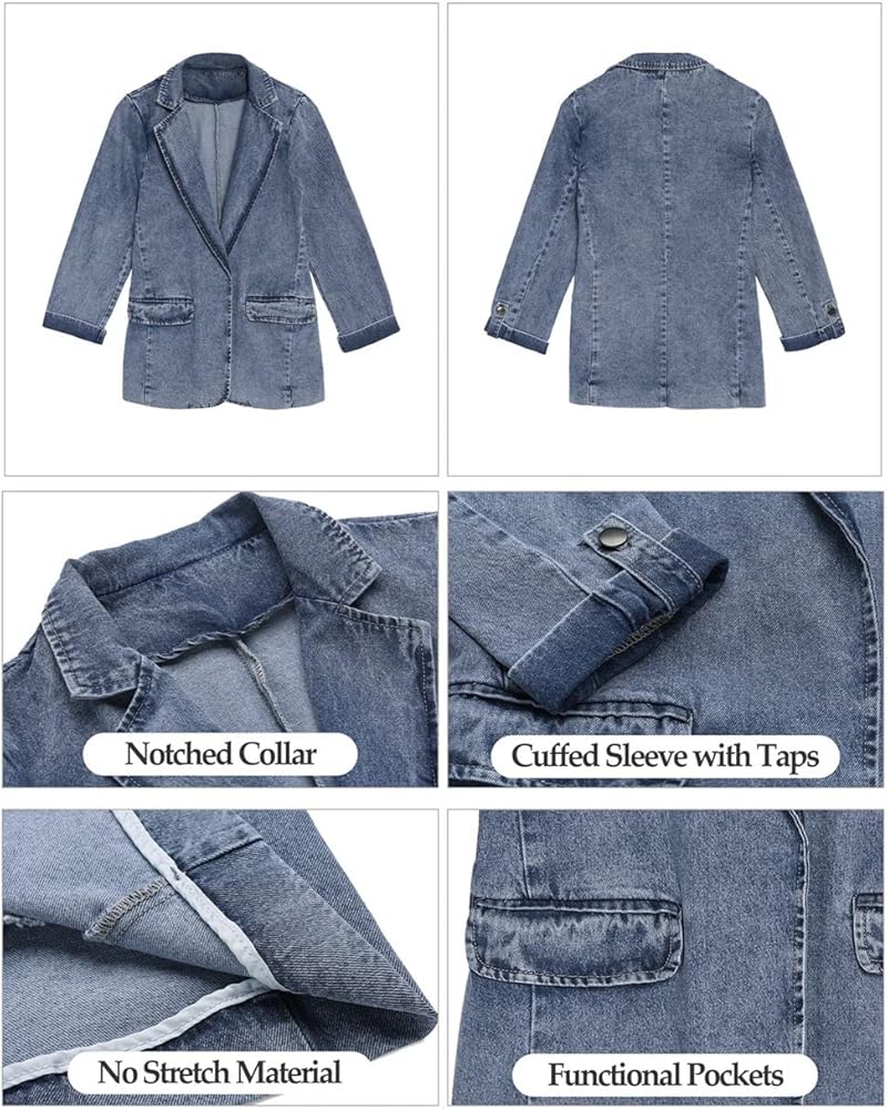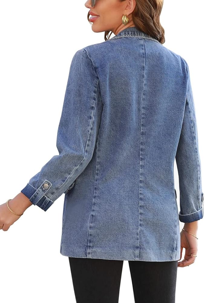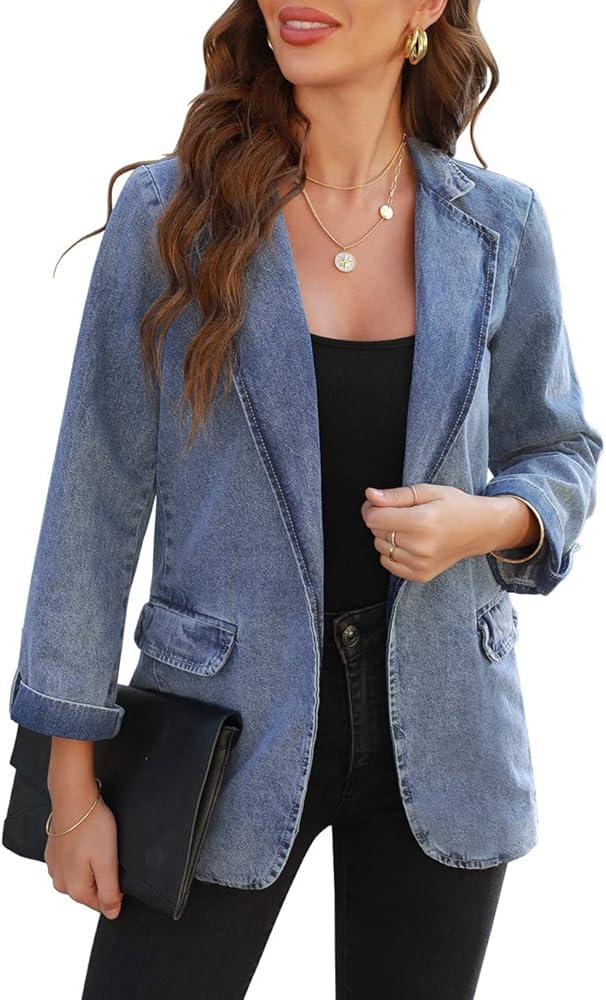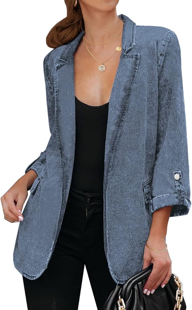 تتميز السترة النسائية المفتوحة من الأمام بجيوب جانبية عملية، وهي مريحة لحمل بعض الأشياء الصغيرة. سترة جينز مريحة لا تحتوي على بطانة أو تمدد.