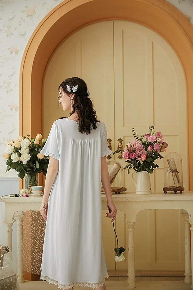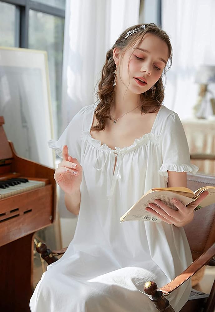ثوب نوم قطني بأكمام قصيرة ملابس نوم ناعمة على الطراز الفيكتوري فستان بيجامة أبيض عتيق فستان نوم الأميرة للنساء