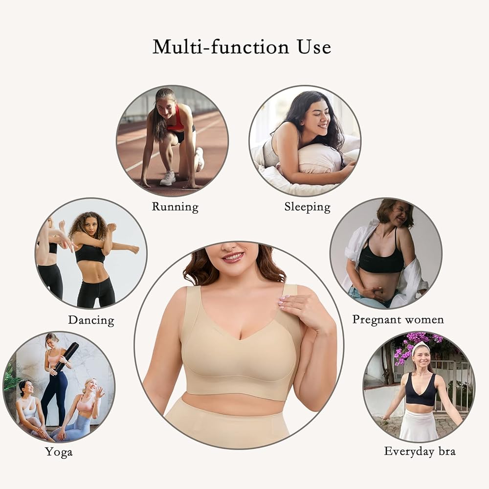 ✿✿✿حمالة صدر مريحة ومبطنة بشكل خفيف: توفر الأكواب الإسفنجية دعمًا قويًا حتى بدون أسلاك. تحتوي الملابس الداخلية الضاغطة للسيدات على أحزمة كتف سميكة، ولا يوجد دعم بسلك داخلي، وهي سلسة بشكل أساسي وغير شفافة. مثالية للارتداء تحت جميع أنواع الملابس أو منفردة! للحصول على ملاءمة آمنة وسهلة الارتداء والخلع لحمالات الصدر للنساء بدون أسلاك. يضمن المشبك ذو الصفوف الأربعة ملاءمة آمنة لجميع الحركات بينما يجعل هذه الصدرية المريحة سهلة التعديل في الحجم، مناسبة لك بشكل أفضل