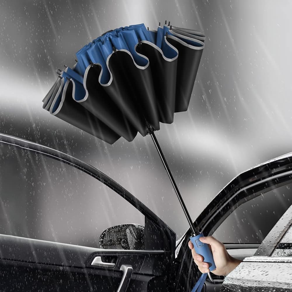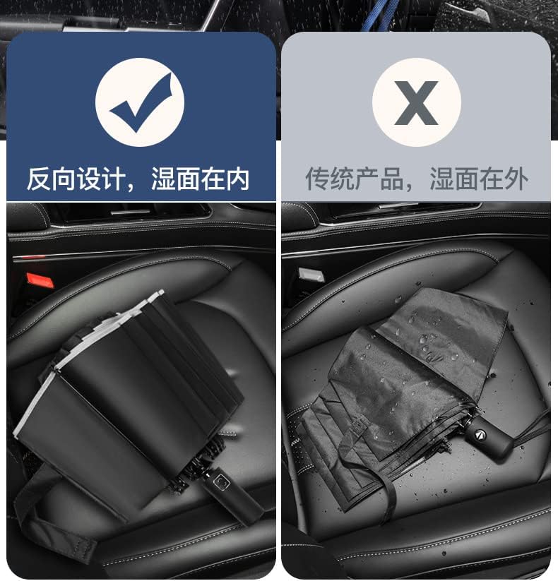 • Reverse Design: Our reverse umbrella is different from traditional umbrellas. When this umbrella is put away, the wet part will be inside the umbrella, preventing water from dripping and keeping the floor and car dry.