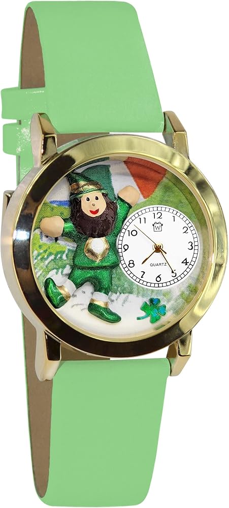 الهدية المثالية لأي شخص يحب عيد القديس باتريك! تتميز ساعة العلم الأيرلندي الخاصة بيوم القديس باتريك بوجود جني سعيد وبرسيم محظوظ بأربع أوراق، وكلها فوق خلفية العلم الأيرلندي. أدلي ببيان عالي التأثير مع التعبير عن شخصيتك وحبك للأيرلنديين بأسلوب أنيق!