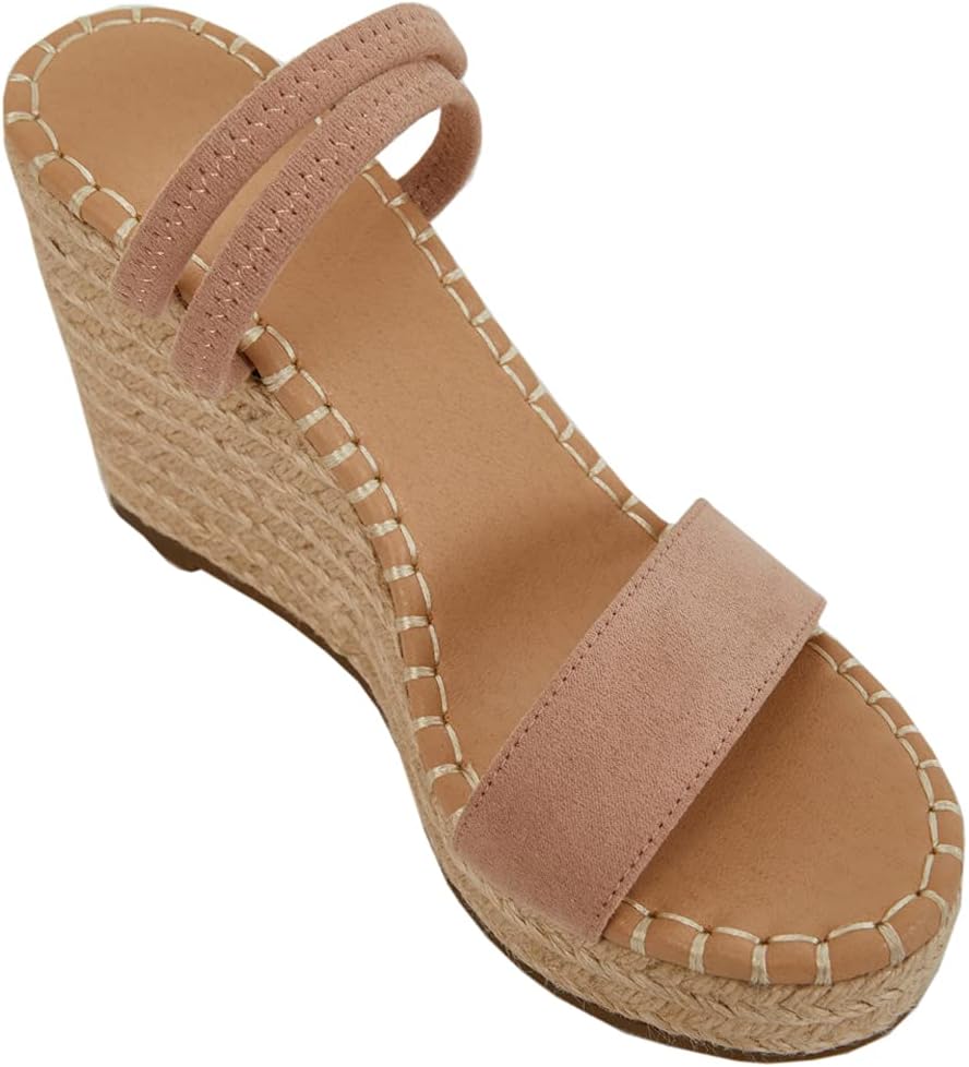 صندل نسائي من VETASTE بشريط للكاحل ويدج مفتوح من الأمام وصندل إسبادريل ذو نعل سميك