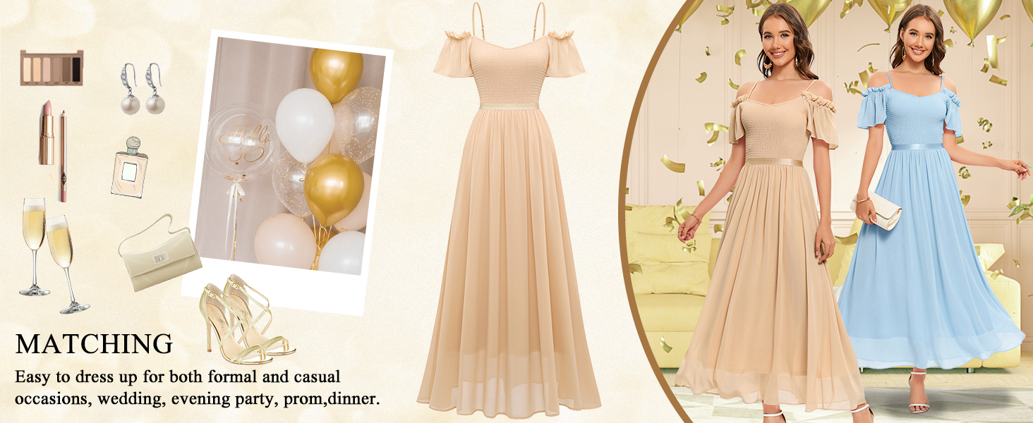 [فساتين الشيفون للنساء الرسمية] مناسبة للنساء والمراهقين والصغار والسيدات والمناسبات الرسمية وشبه الرسمية والعادية.