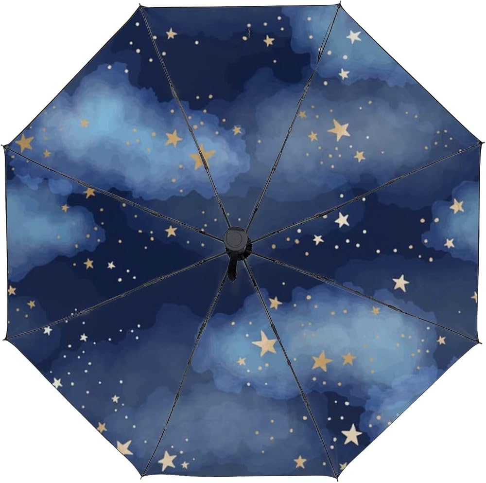 مظلة قابلة للطي لهاتف Galaxy خفيفة الوزن مقاومة للرياح ومناسبة للسفر، حماية تلقائية من الأشعة فوق البنفسجية، وغيوم النجوم للمطر وأشعة الشمس بلون أزرق داكن