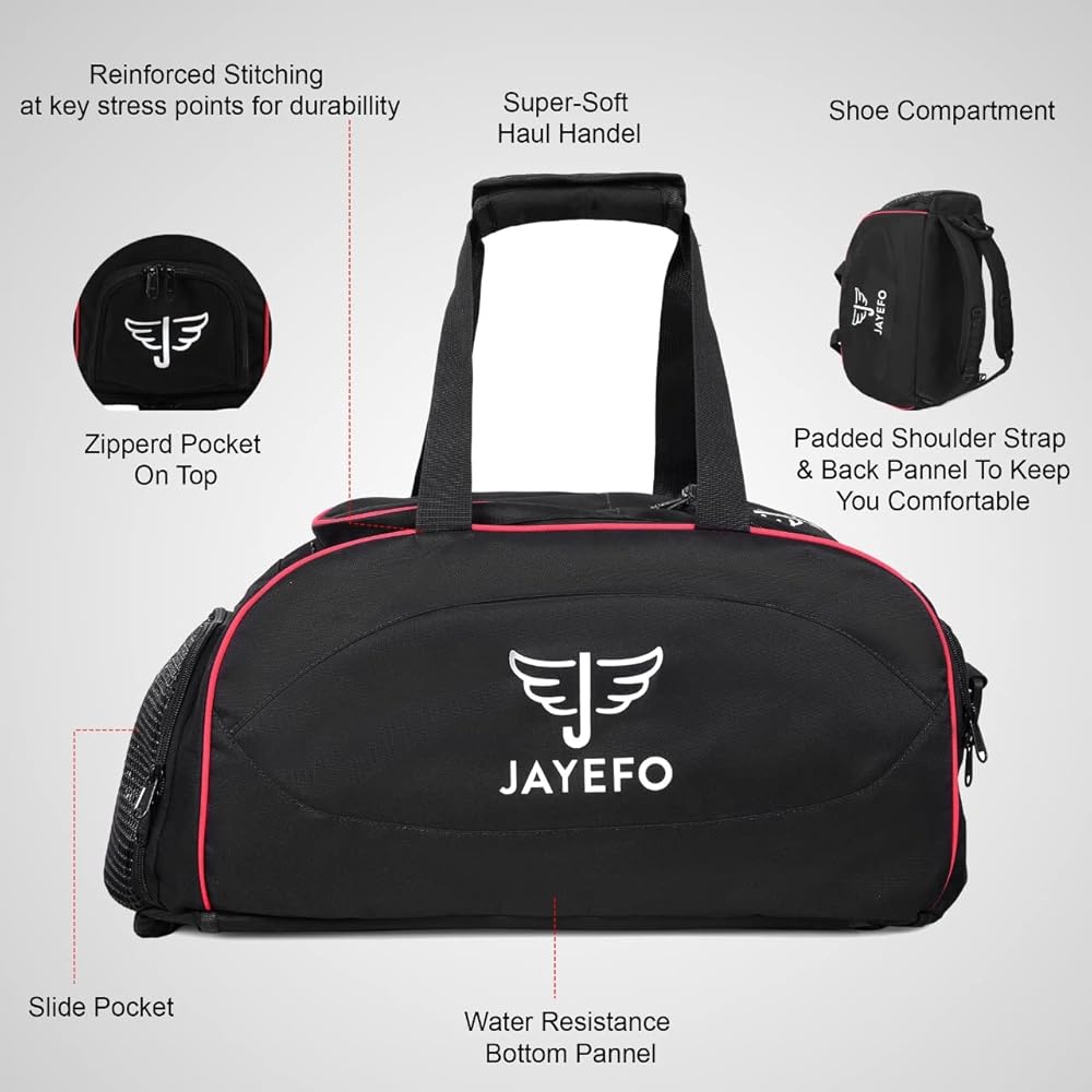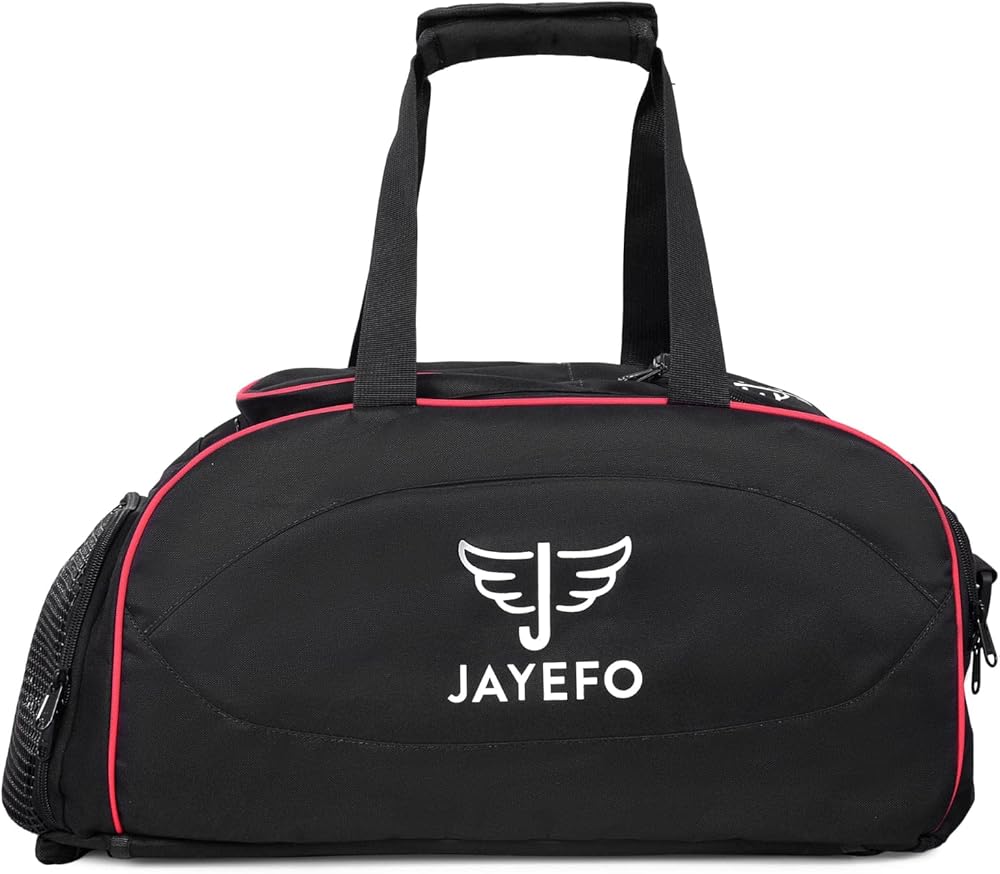 Jayefo Sports Duffle Bag for Travel, Gym, Camping, Overnight and Sports This travel bags for men for men and women has many features like heavy duty lightweight material, standard mid-range size men & women gym bag, perfect size gym bag. This Large duffle bag for travel a water resistance sports gym bag with soft shoulder straps duffle bag to carry your clothes and other things you need for the trip. This waterproof duffel bag has super soft hauling handle travel backpack that helps you carry it easily from one place to another place. The reinforced stitching hiking bag are made of top grade zippers to ensure long lasting durability. The top grade zippers of this gym duffle bag make it easy to access your belongings, while the mesh zipper compartment keeps them well-organized. A flat front pocket provides quick access to smaller items. The professional tone of voice makes this an excellent choice for anyone looking for a reliable overnight bags for men and women, which makes it travel essential.