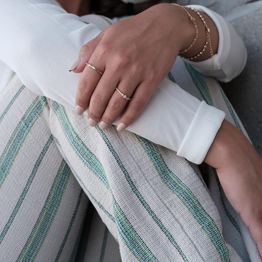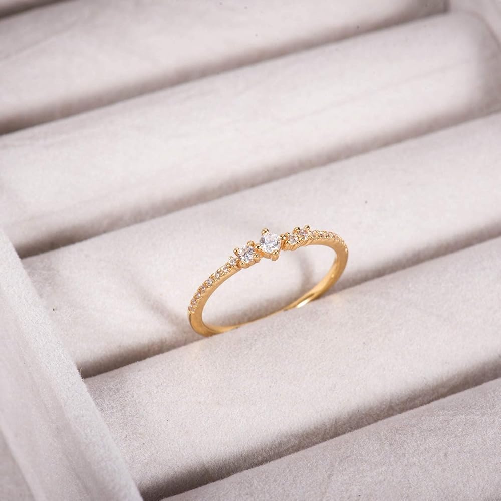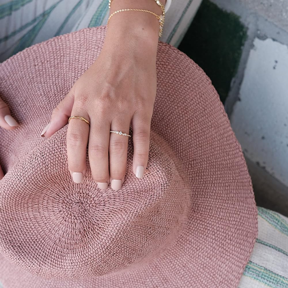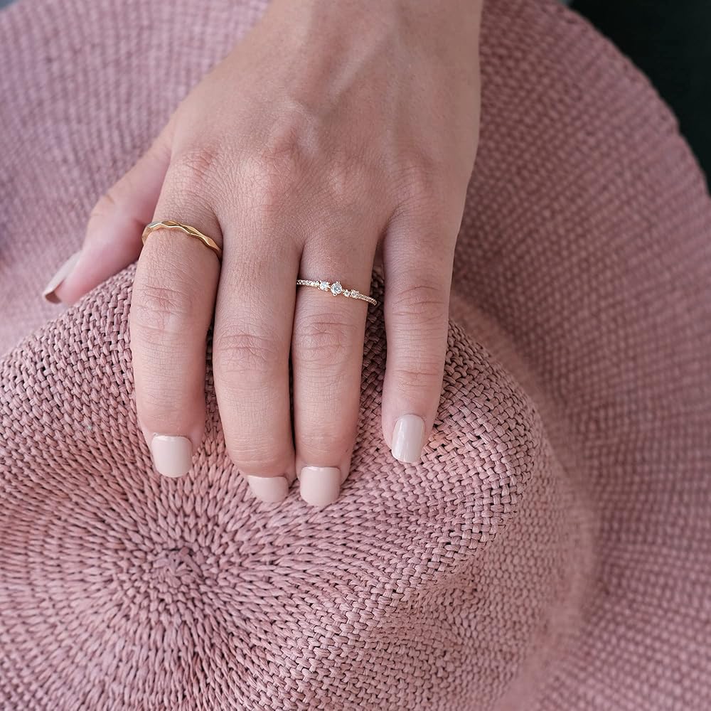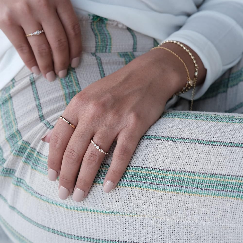 BLOSSOM & HUE خاتم ألماس مقلد من الفضة الإسترليني المطلية بالروديوم | خاتم زفاف ذهبي رقيق قابل للتكديس من تشيكوسلوفاكيا