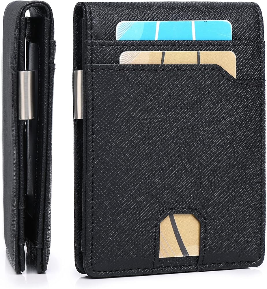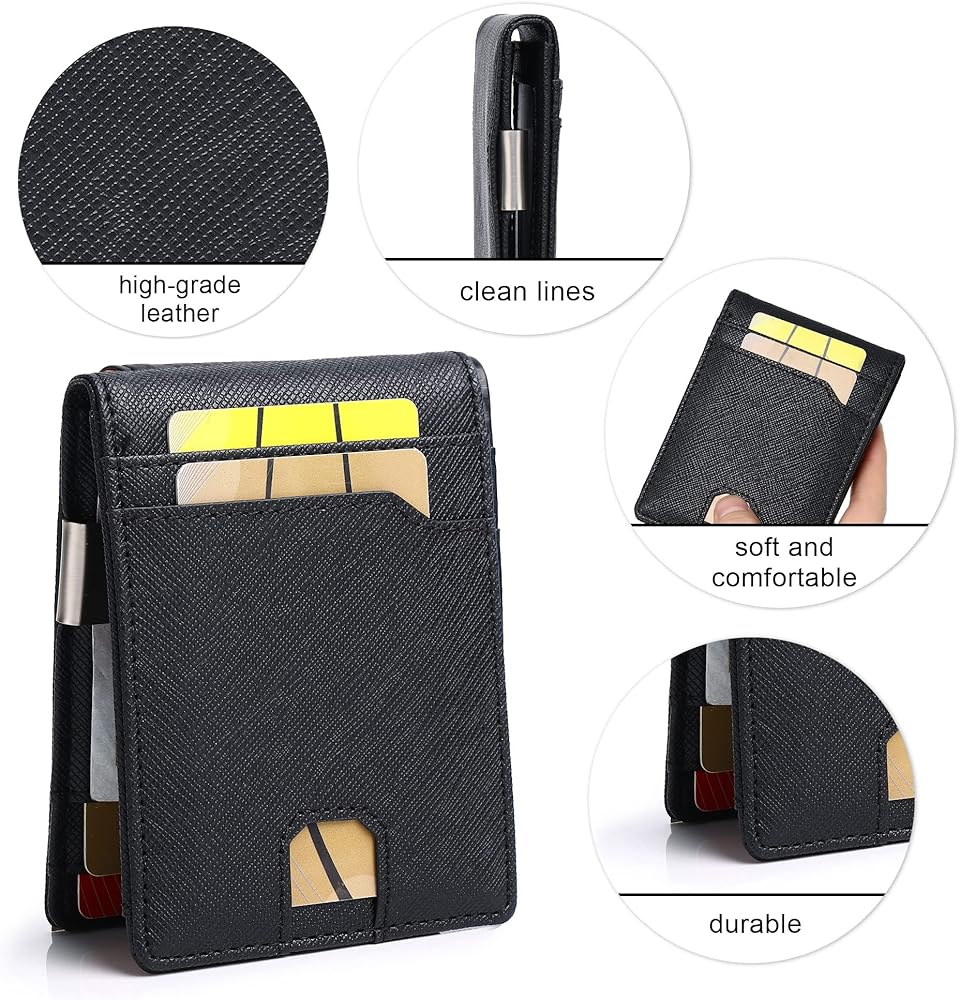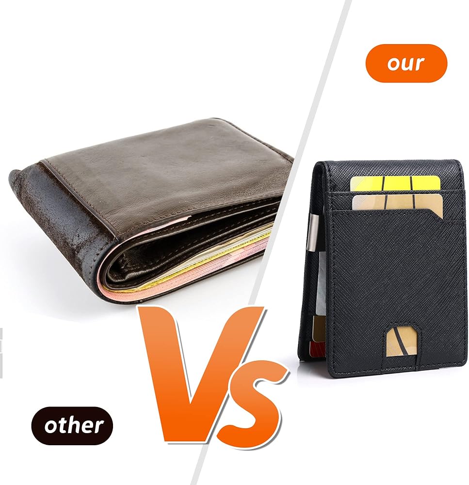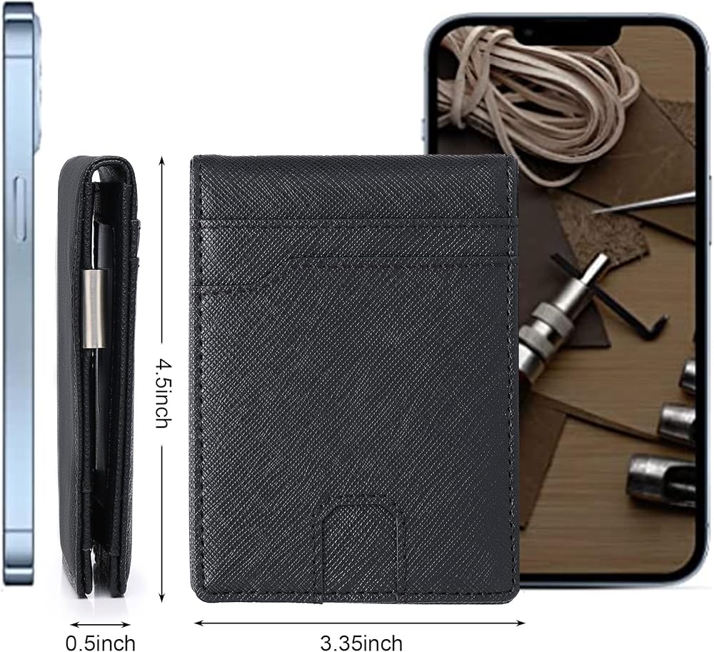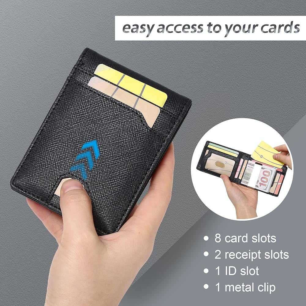 [محفظة رجالية نحيفة] حجم محافظ الرجال: 4.5*3.35*0.5 بوصة. مع 8 فتحات للبطاقات، 2 فتحة للإيصالات، 1 فتحة لبطاقة الهوية، 1 مشبك معدني. إنها مثالية لحمل بطاقات العمل وبطاقات الائتمان والخصم والفواتير والمزيد. تسمح لك الشقوق الخارجية بإخراج البطاقات بسهولة.