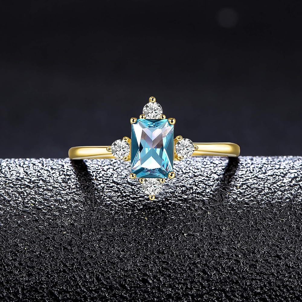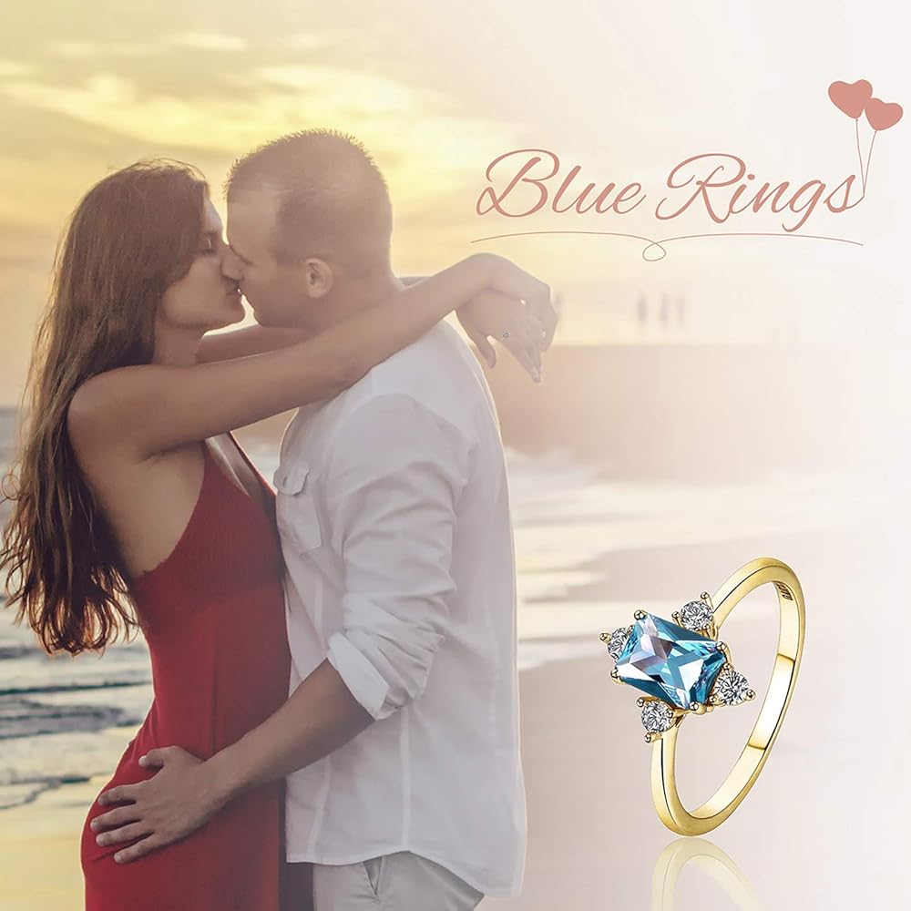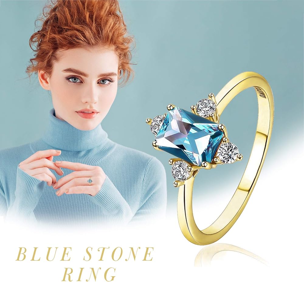 خواتم LAZLUVU التوباز الأزرق، خاتم الخطوبة من الذهب الأبيض والذهبي الوردي مقاس 5-10 للنساء مجوهرات الأم هدية عيد الميلاد