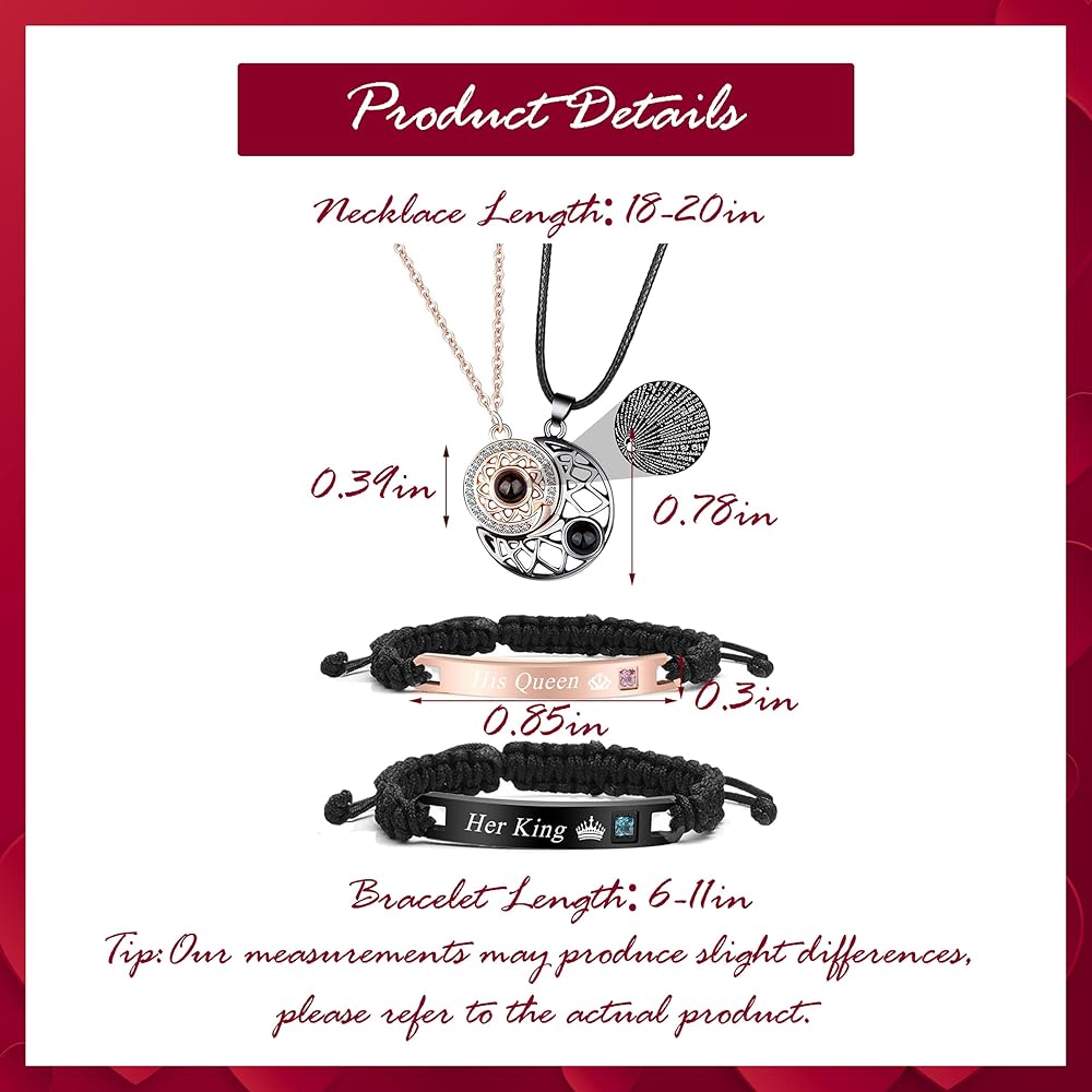 • مطابقة الهدايا الزوجية: هل تبحث عن هدية فريدة لشخص تحبه؟ لقد وجدت العنصر المثالي لهذا! هذه القلائد والأساور، المصنوعة من مواد عالية الجودة، متينة بما يكفي لتحمل اختبار الزمن. كما أنها خفيفة الوزن ومريحة في الارتداء، لذلك يمكنك ارتداؤها طوال اليوم دون الشعور بالثقل أو عدم الراحة.
