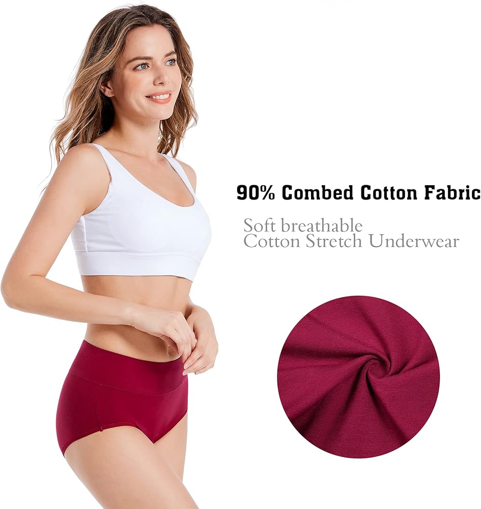 • 【ملابس داخلية عالية الخصر】الملابس الداخلية جيدة التهوية، نسيج ناعم ماص للرطوبة، يبقيك باردًا ويجف بشكل أسرع من القطن العادي. مصممة للارتداء اليومي.