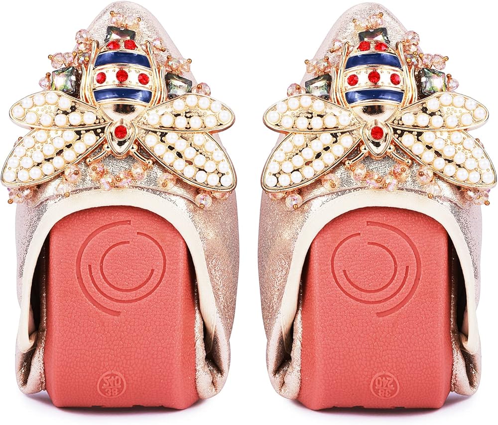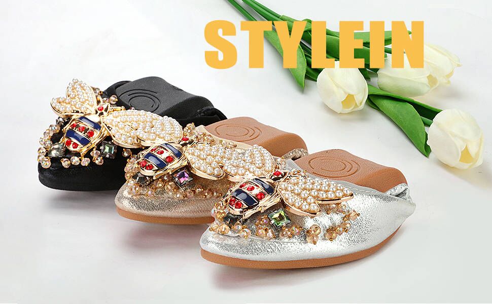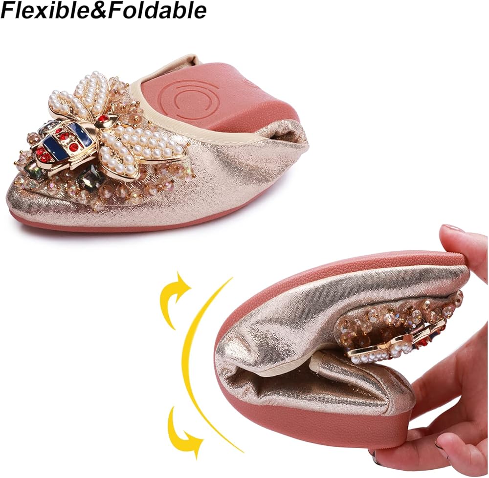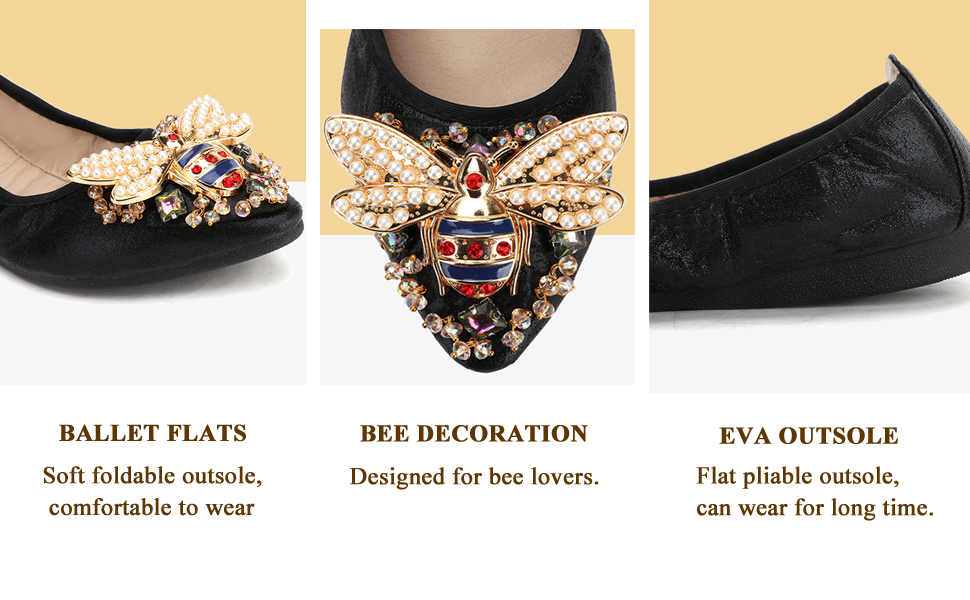 ♥【إصبع جميل من حجر الراين】أحذية راقصة الباليه المسطحة القابلة للطي مزينة بأحجار الراين، جميلة وأنيقة وعصرية. مقدمة مدببة أنيقة مع زخرفة نحل خاصة، فهي لامعة بما يكفي لتلفت الأنظار دون أن تكون مبهرة للغاية.