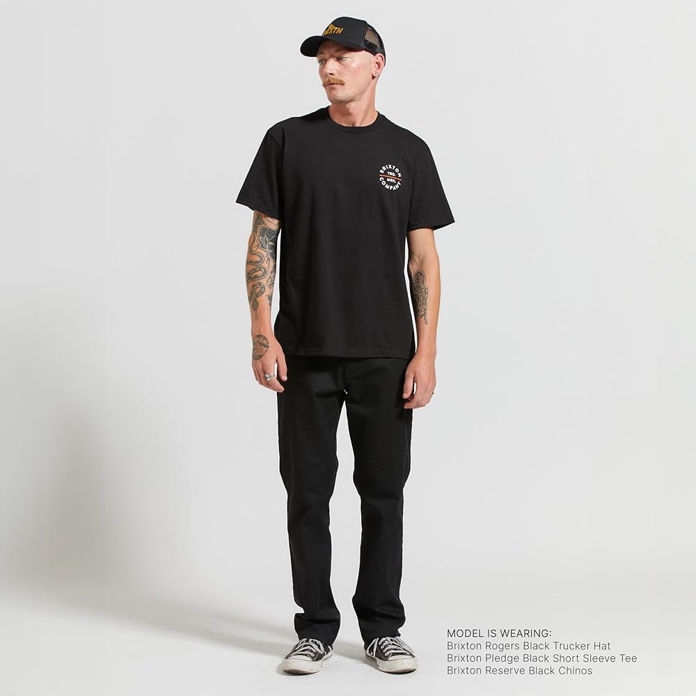 - A Brixton standard fit short-sleeve tee with a custom screen print.