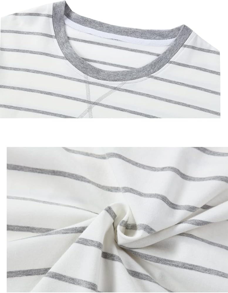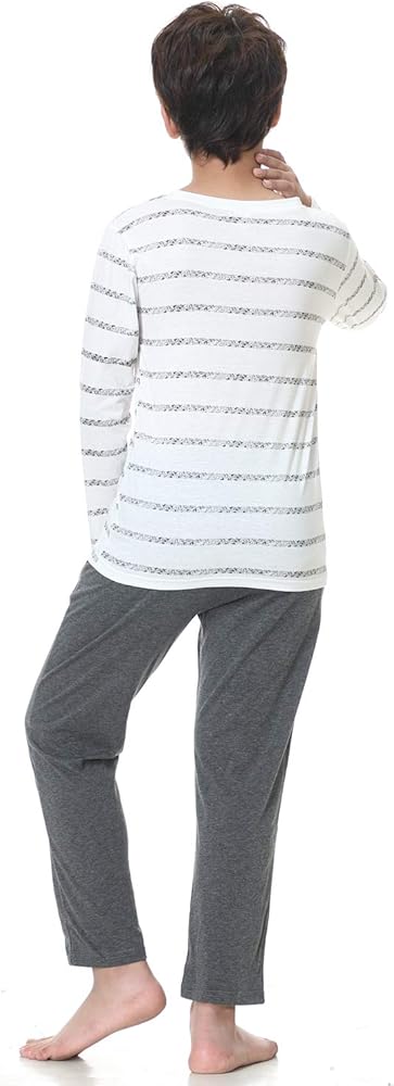 This 2-piece pajama set includes White Striped tops and matching pants,Loose Relaxed fit.