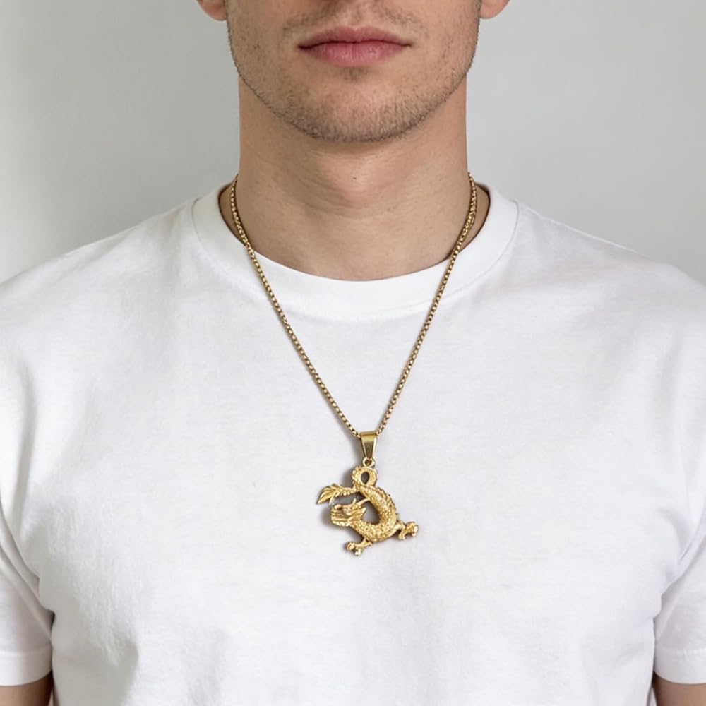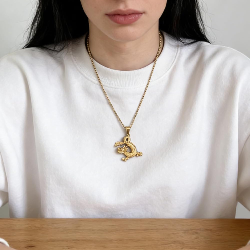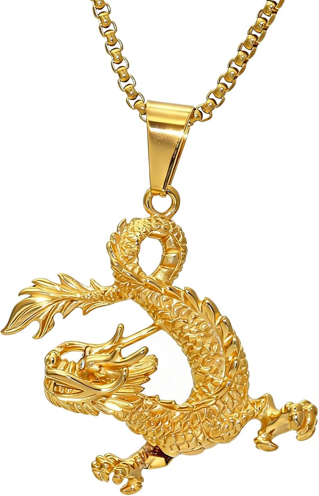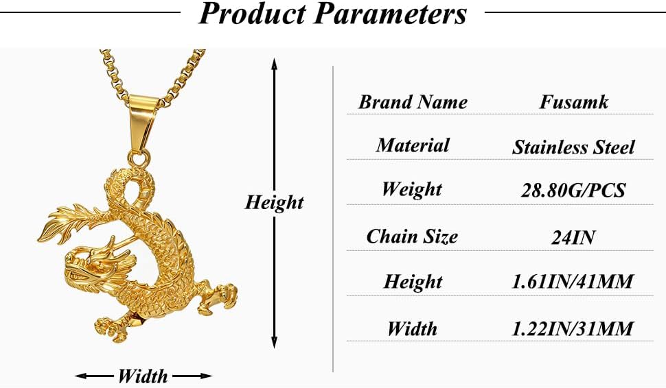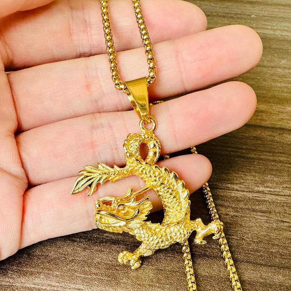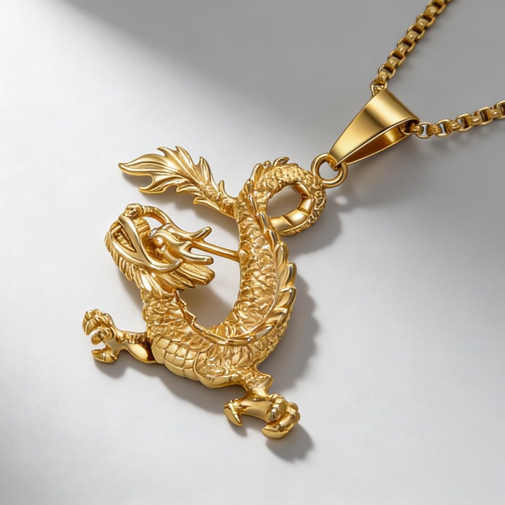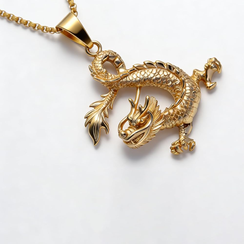 • مادة قلادة التنين مصنوعة من الذهب المطلي بالذهب عيار 18 قيراط.