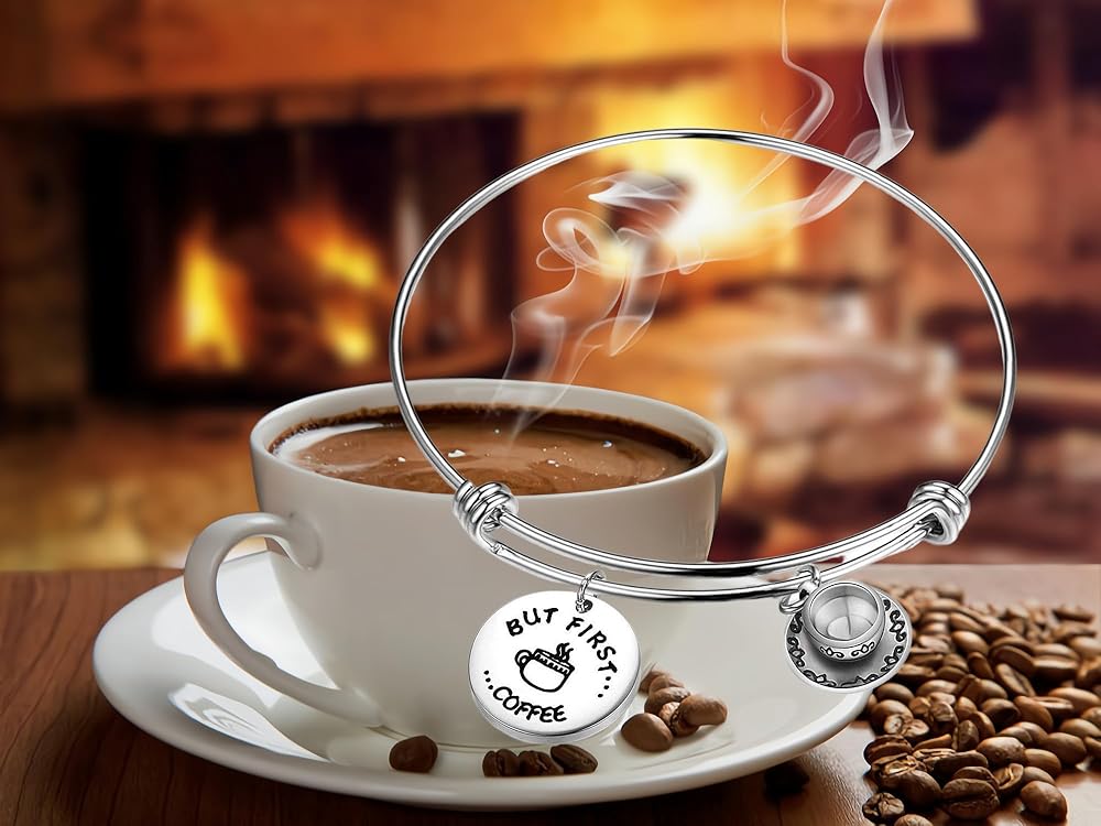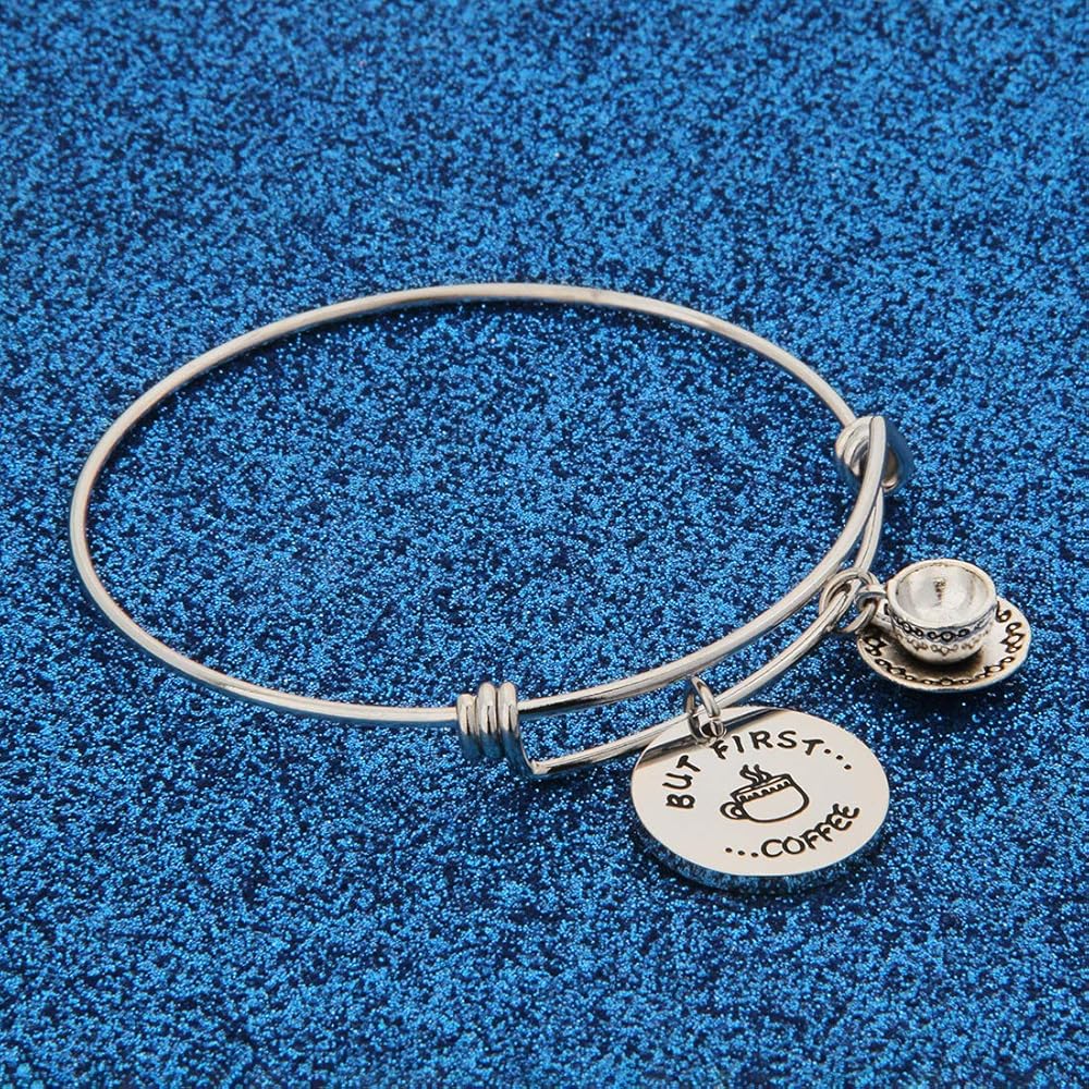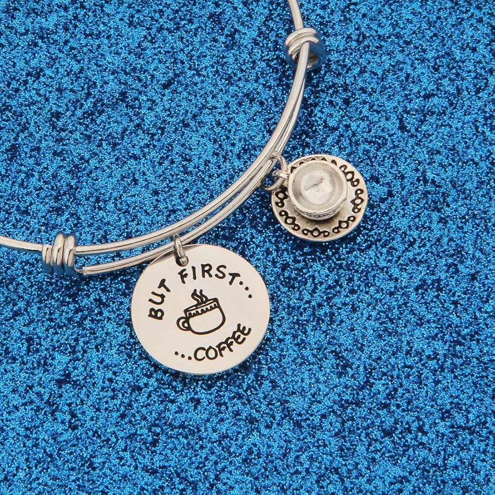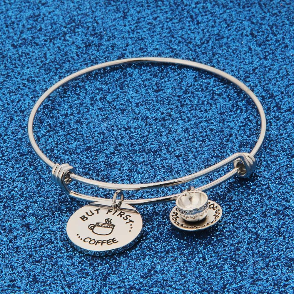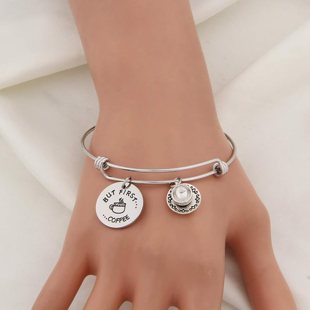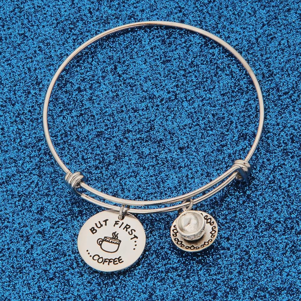 WUSUANED Coffee Addict Bracelet But First Coffee Jewelry Gift for Barista Coffee Lover
