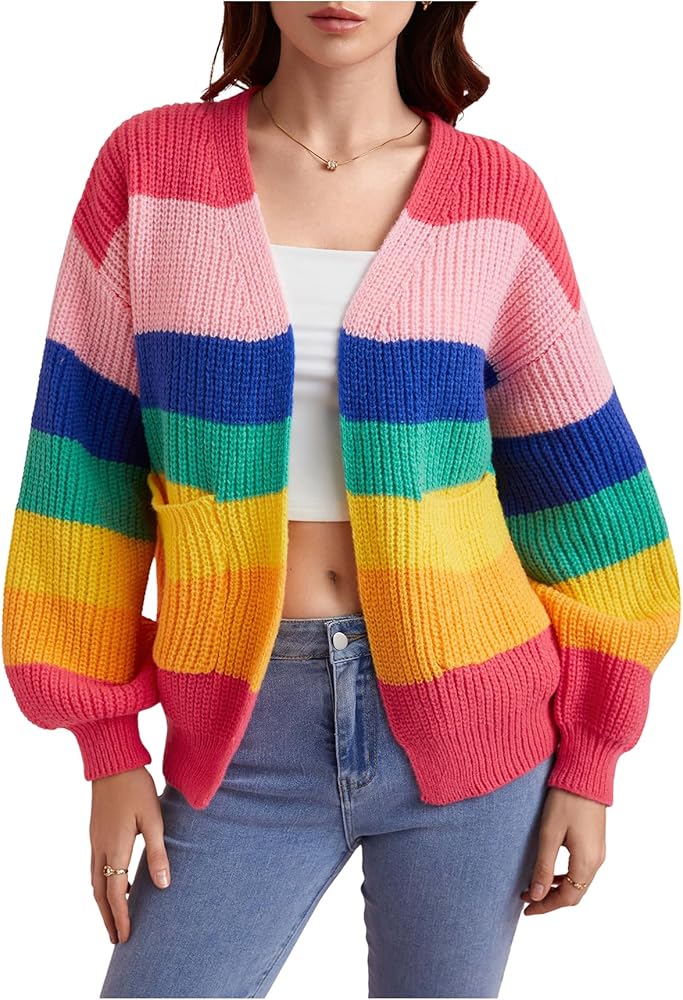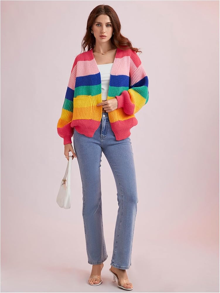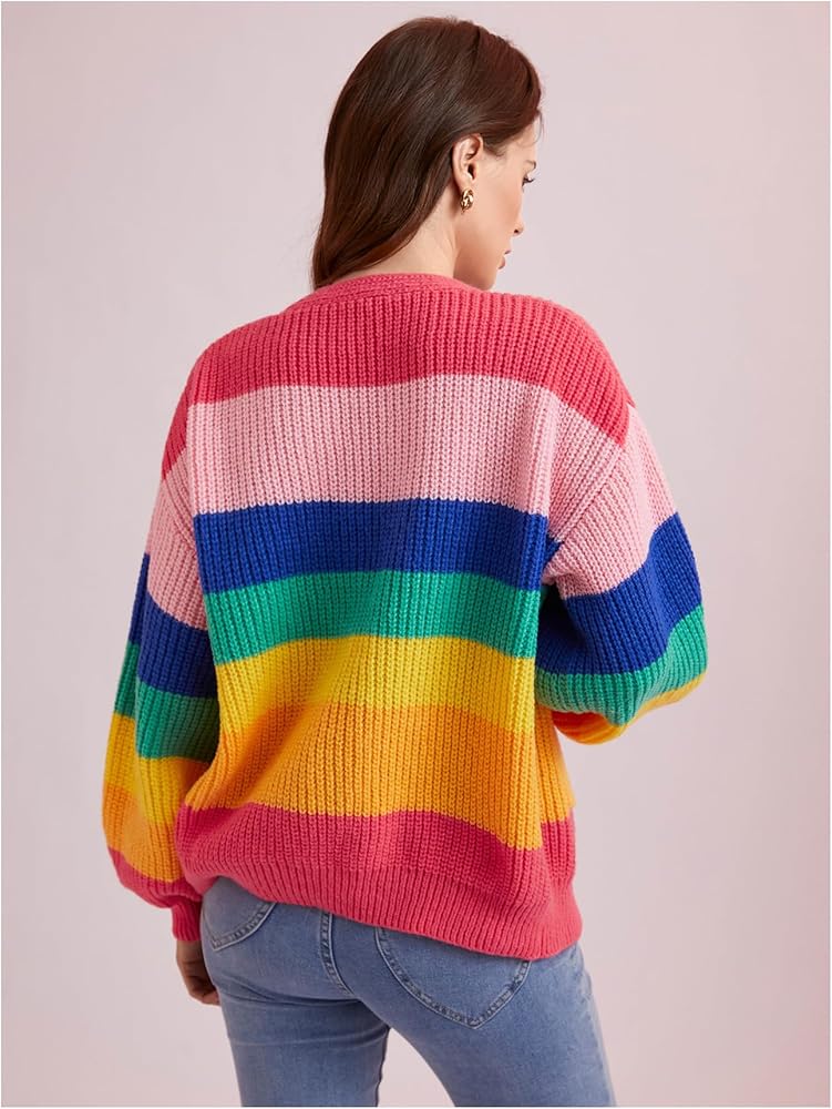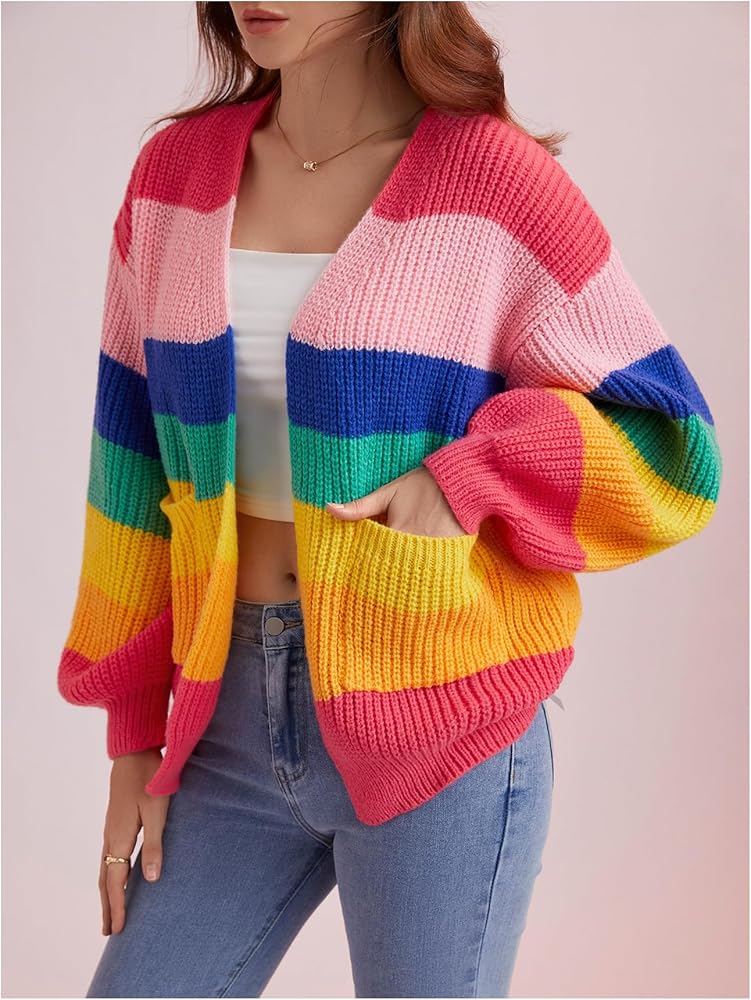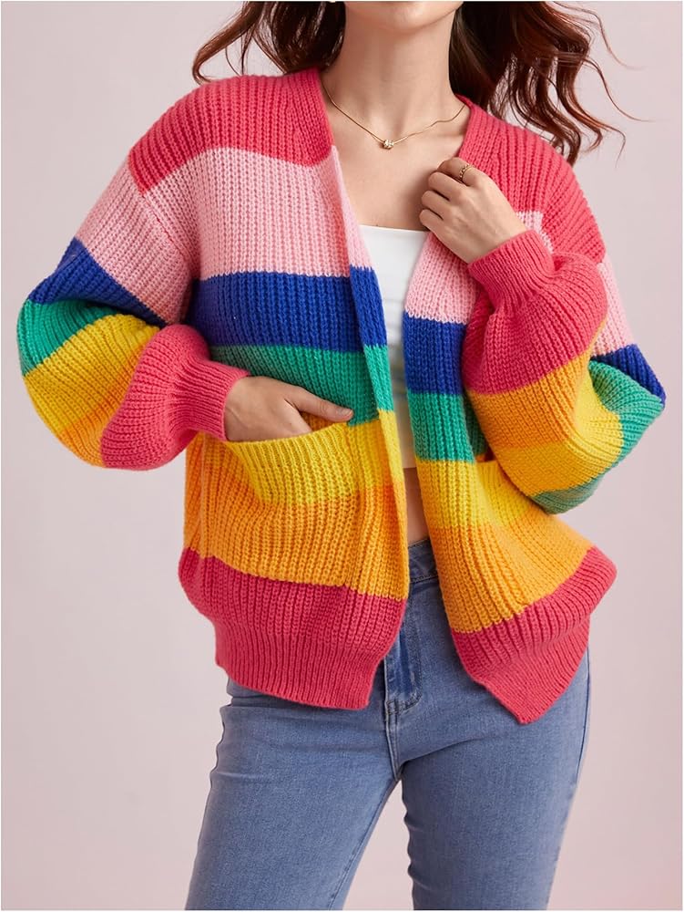 - النمط: ناعم ومريح، وسهل الارتداء والخلع، تضيف الخطوط الملونة لمسة مرحة إلى هذه السترة