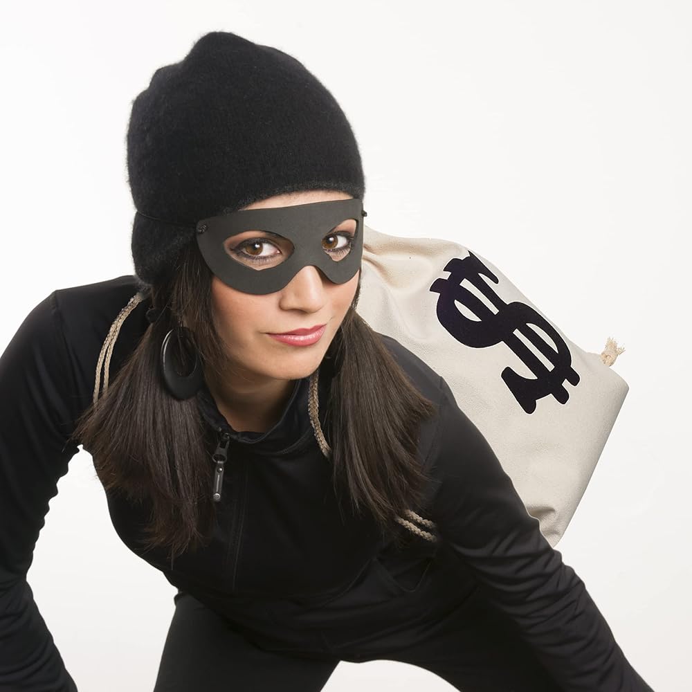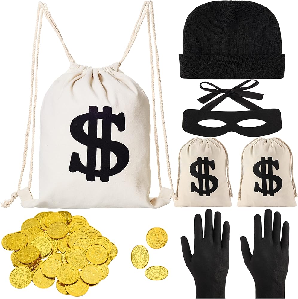 يارمومو مجموعة زي تنكري للسارق، تتضمن 100 قطعة من العملات المعدنية الذهبية البلاستيكية وحقيبة قماش، مجموعة زي لص السارق للهالوين والحفلات التنكرية بطابع اللص