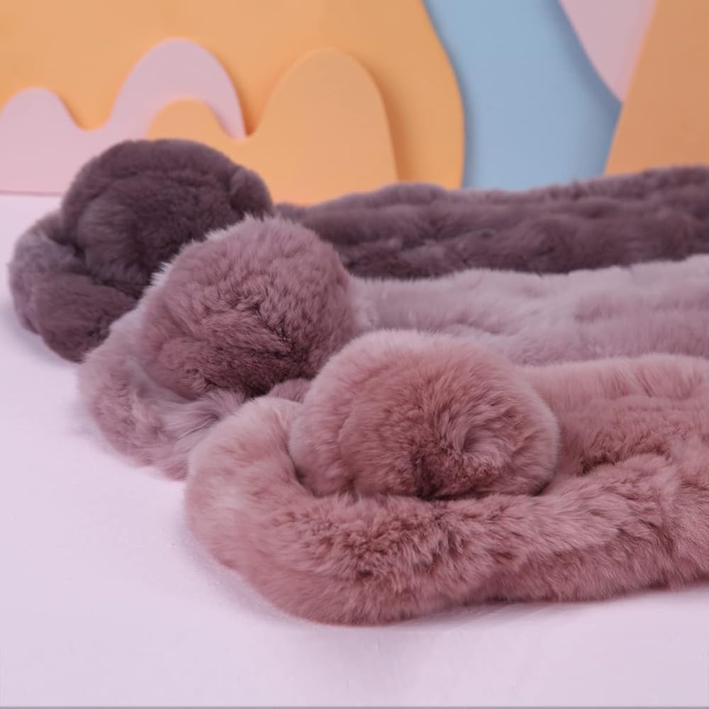 • This winter scarf is durable and has a lovely hand feel. Rex rabbit resists fading and pilling like no other material.