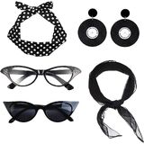 The 1950s women's clothing and accessories set are retro-style accessories. Wearing them at a party will definitely bring you many surprises. The design of the record earrings is unique. The chiffon transparent silk scarf can be worn according to your favorite style. The polka-dotted headband It can be said to be very cute, and it is often used in life. Cat glasses and black frame glasses can be used for life photography and modeling. All in all, these accessories are very practical and worth having!