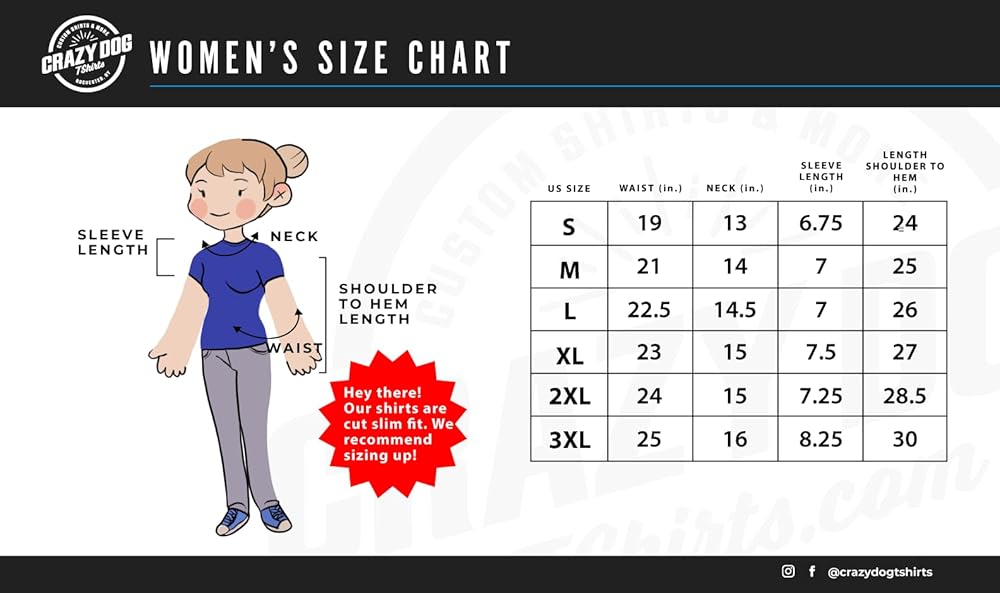 • مناسب للسيدات: هذه القائمة مخصصة للتي شيرت النسائي البالغ ذو المقاس النحيف (المعروف أيضًا باسم المقاس الصغير). هذه التيشيرتات اللطيفة ذات المقاس الصغير، لذا تحقق مرة أخرى من جدول المقاسات واطلب مقاسًا أكبر إذا كان مقاسك بين مقاسين.