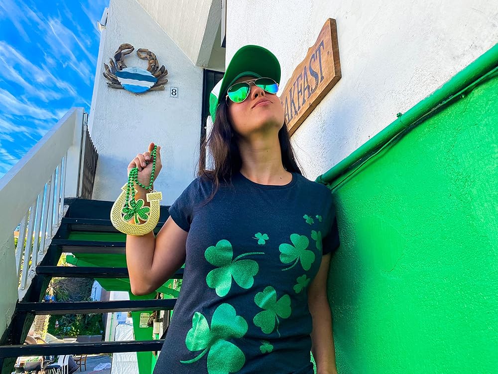 • احصل على مظهرك الأيرلندي: هذا التيشيرت المحظوظ هو كل ما تحتاجه باللون الأخضر في يوم القديس باتي. سواء كنت تسميهم نباتات النفل أو أوراق البرسيم ذات الأربع أوراق، فقد وجدت الزي المثالي لاستعراض القديس باتريك السلتي! لقد حان وقت الأرز في سانت باتس!