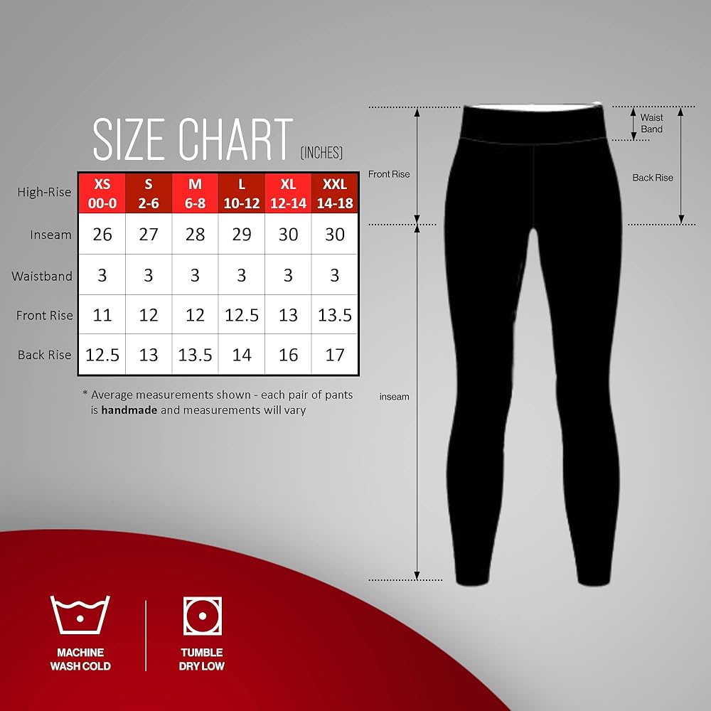 Stretchable leggings are sized for women 00-18. Machine wash and tumble dry.