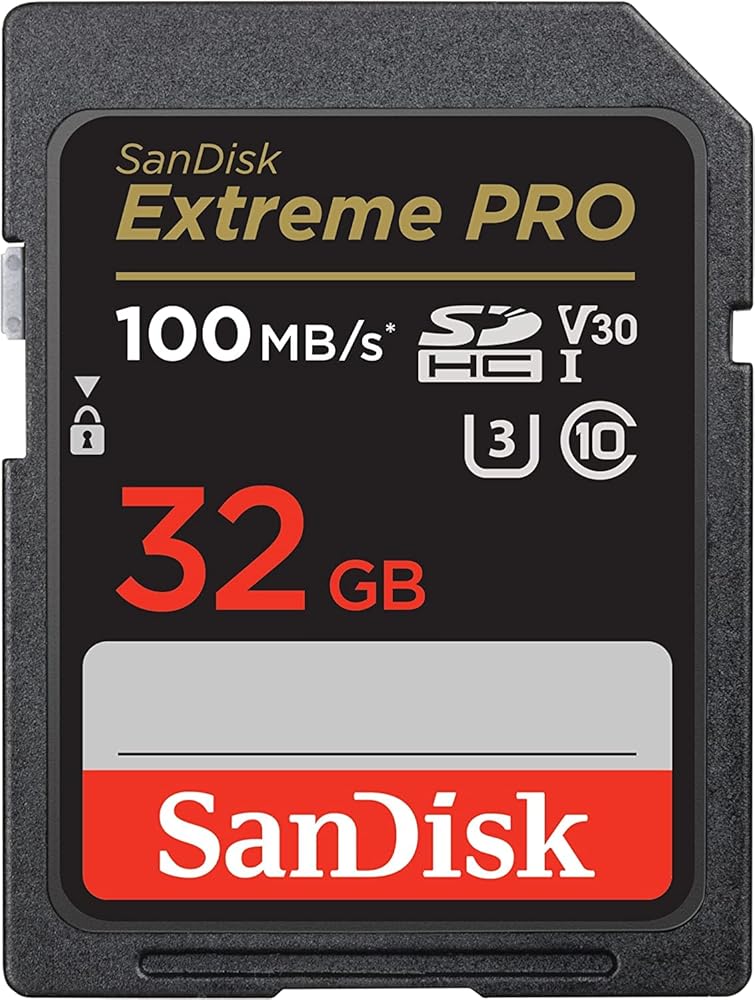 سانديسك بطاقة ذاكرة اس دي اتش سي اكستريم برو بسعة 32GB تعمل مع كاميرا كانون EOS ريبل T5 وT5i وT6 وT6i وT7 وT7i وT7i الرقمية بدقة 4K V30 (SDSDXXG-032G-GN4IN) مع قارئ ايفريثينج بات سترومبولي 3.0