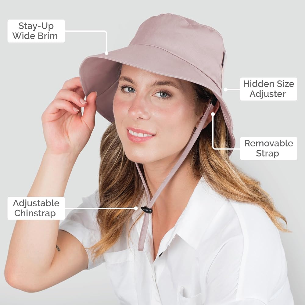 • حماية من أشعة الشمس فوق البنفسجية: قبعات الشمس النسائية مصنوعة من نسيج قطني طويل مصنف بعامل حماية من الأشعة فوق البنفسجية 50+ وهو طارد للماء لرذاذ الصيف غير المتوقع. يوفر نسيج مزيج القطن/البوليستر عالي الجودة حماية طويلة الأمد من أشعة الشمس بدون مواد كيميائية أو أصباغ ضارة.