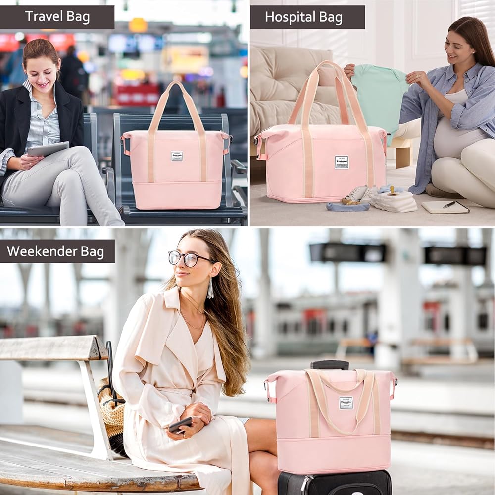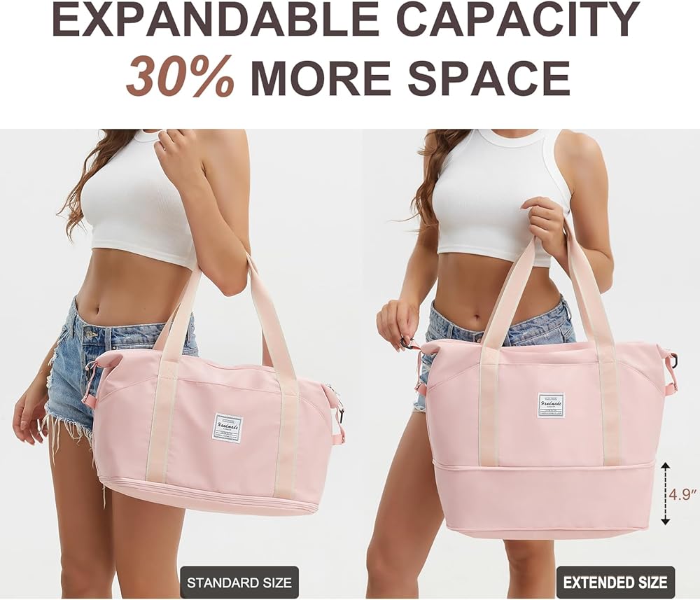 حقيبة سفر قابلة للتوسيع - سحاب في الأسفل للتوسيع للحصول على مساحة إضافية. يناسب ملابس ومستلزمات النظافة والأحذية وأجهزة الكمبيوتر المحمول وأجهزة iPad لمدة 3 أيام. مثالية للأمهات لتخزين الحفاضات أو المناديل المبللة أو استخدامها كحقيبة مستشفى أو للأم.