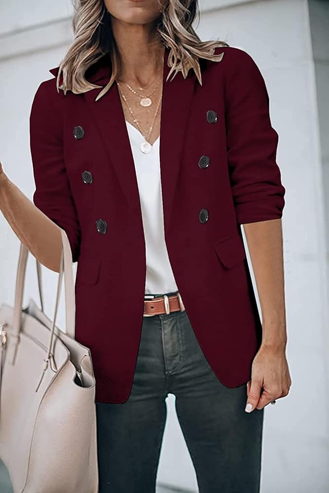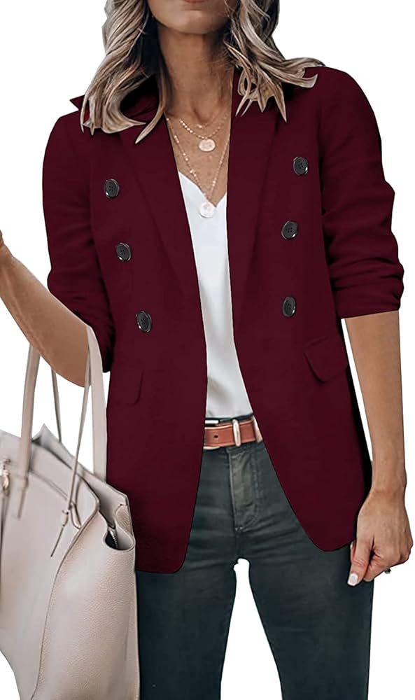 【UNIQUE DESIGN】: Long Sleeve Blazer, open front Blazer, classic v neck design,solid color. Womens Casual Work Office Blazer Jacket.